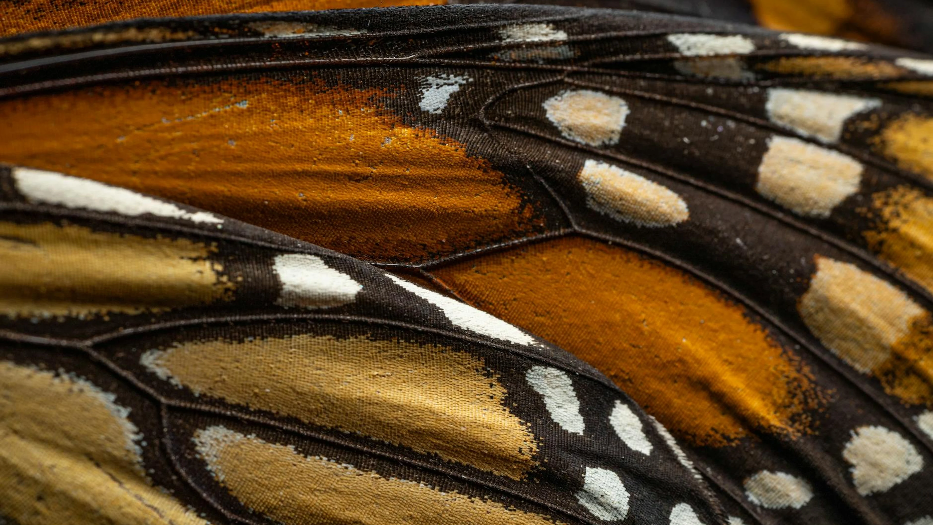 Download Detailed macro of monarch butterfly wing showing vibrant patterns. wallpaper for free. 3840x2160 4K Ultra HD resolution, perfect for your desktop. High quality macro wallpaper.