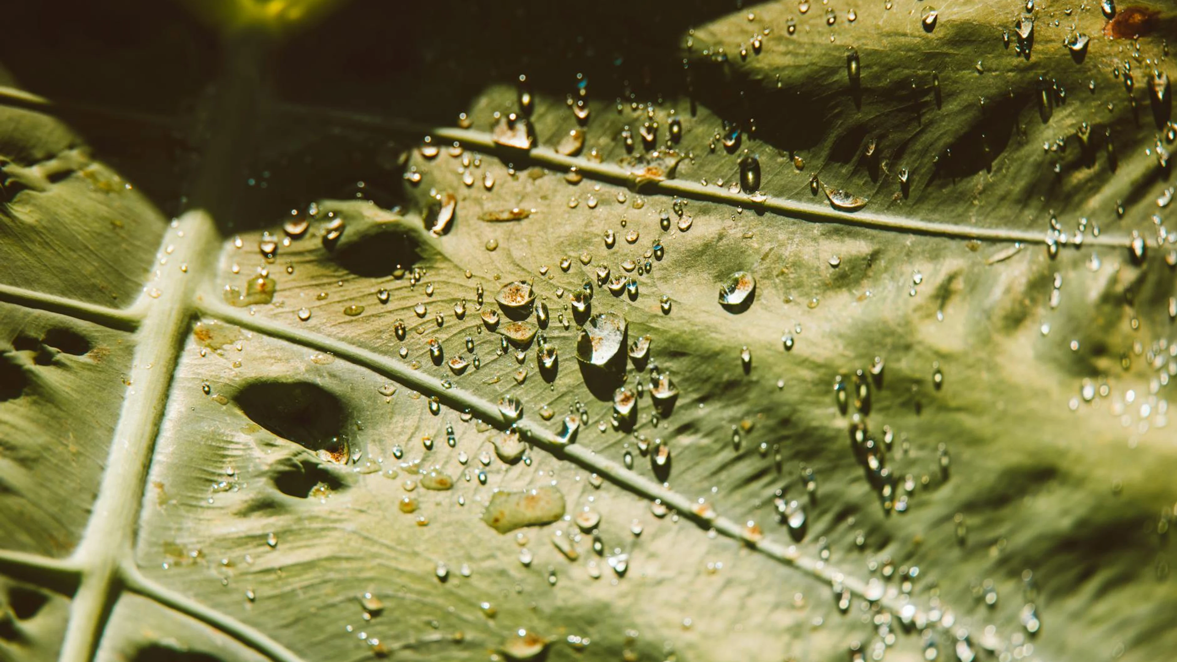 Download Detailed macro shot capturing water droplets on a green leaf surface. wallpaper for free. 3840x2160 4K Ultra HD resolution, perfect for your desktop. High quality macro wallpaper.