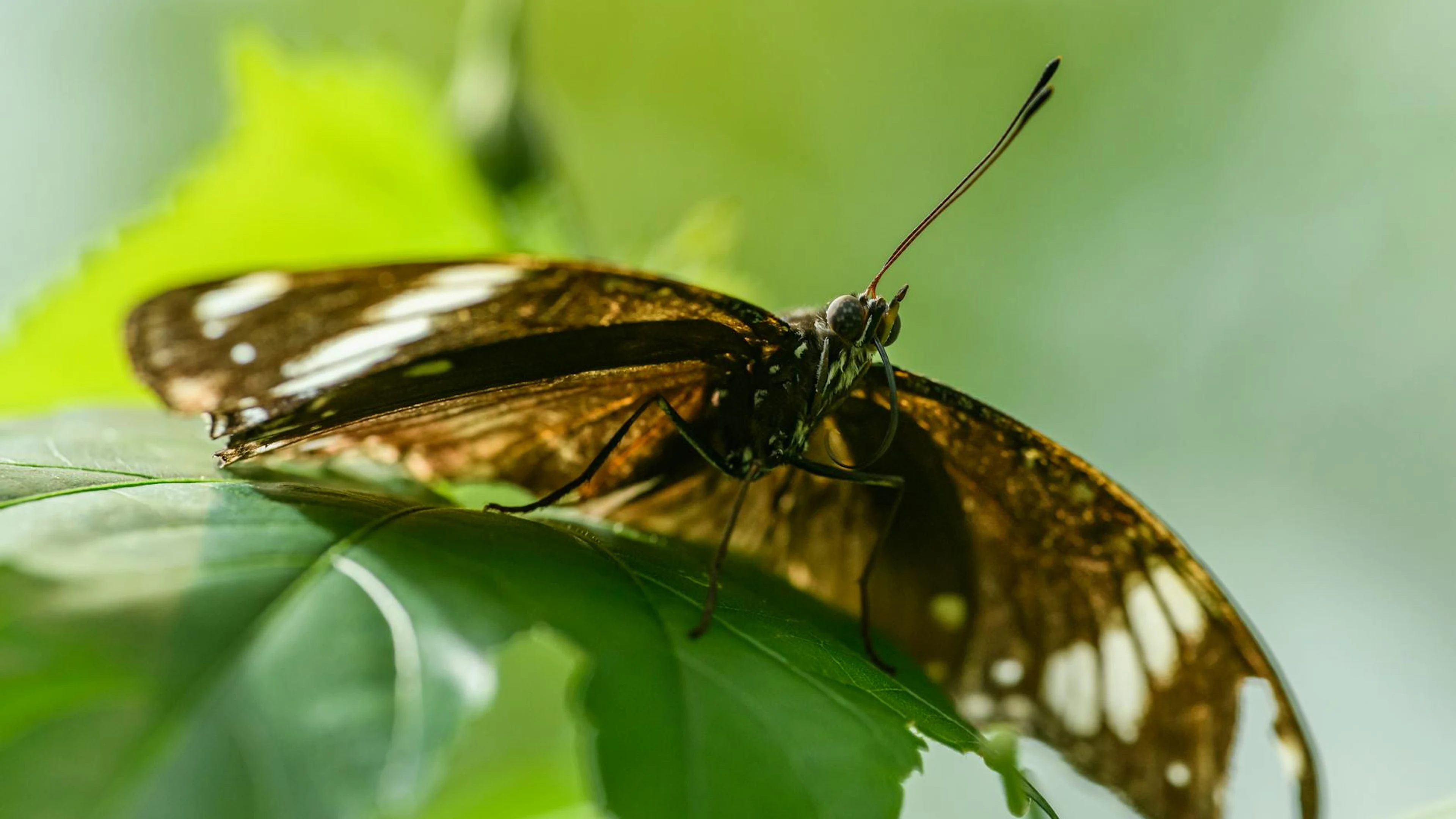 Get this stunning Detailed macro shot of a brown Heliconius butterfly perched on a leaf, showcasin wallpaper in 4K Ultra HD quality. 3840x2160 macro wallpaper available for free download.