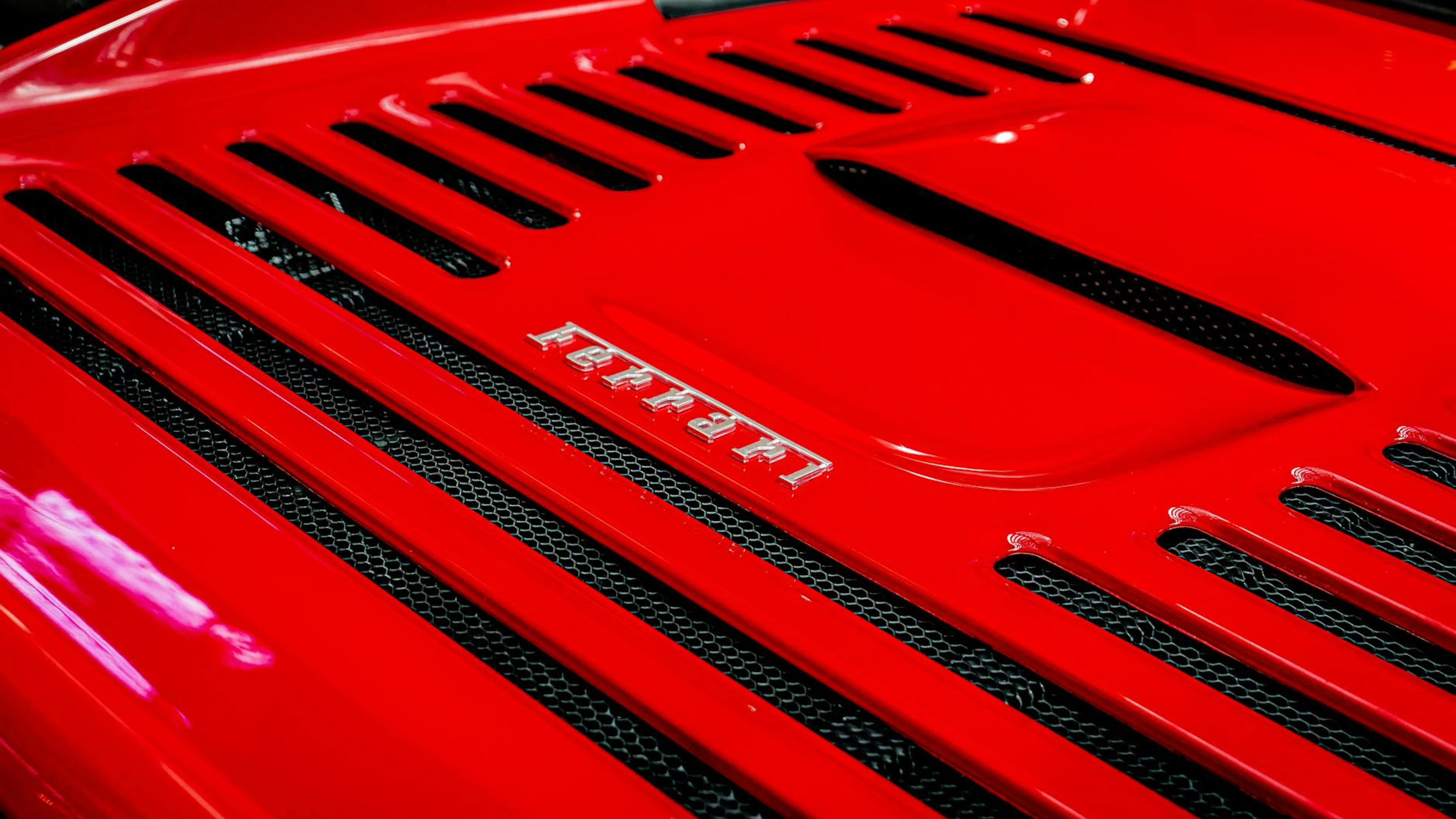 Get this stunning Detailed shot of a Ferrari emblem on a classic red sports car, showcasing luxury wallpaper in 4K Ultra HD quality. 3840x2160 cars wallpaper available for free download.