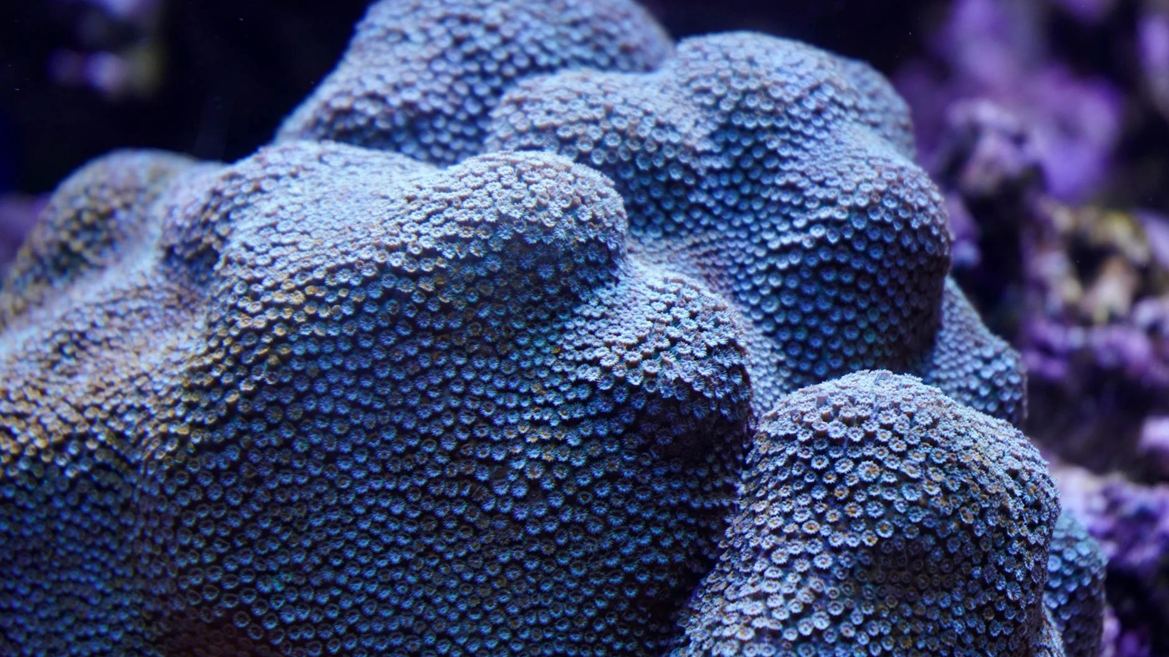 Get this stunning Detailed view of a vibrant purple coral structure in an aquarium setting. wallpaper in 4K Ultra HD quality. 3840x2160 ocean wallpaper available for free download.