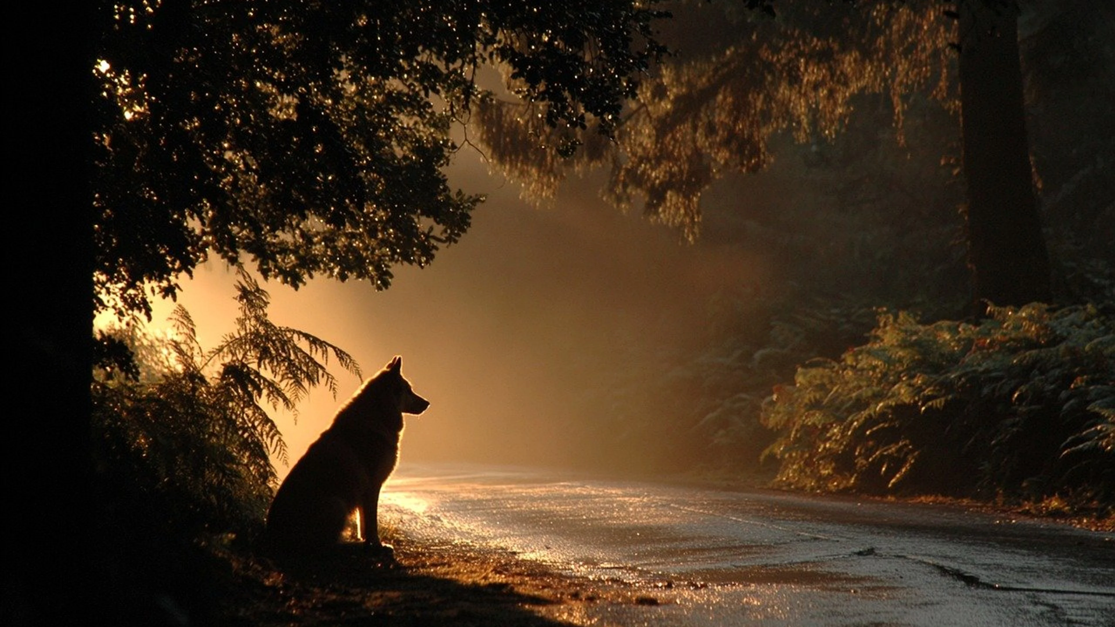 Free Dog silhouette road wallpaper in 4K Ultra HD resolution (3840x2160). Beautiful sunset background for your screen. No signup required.