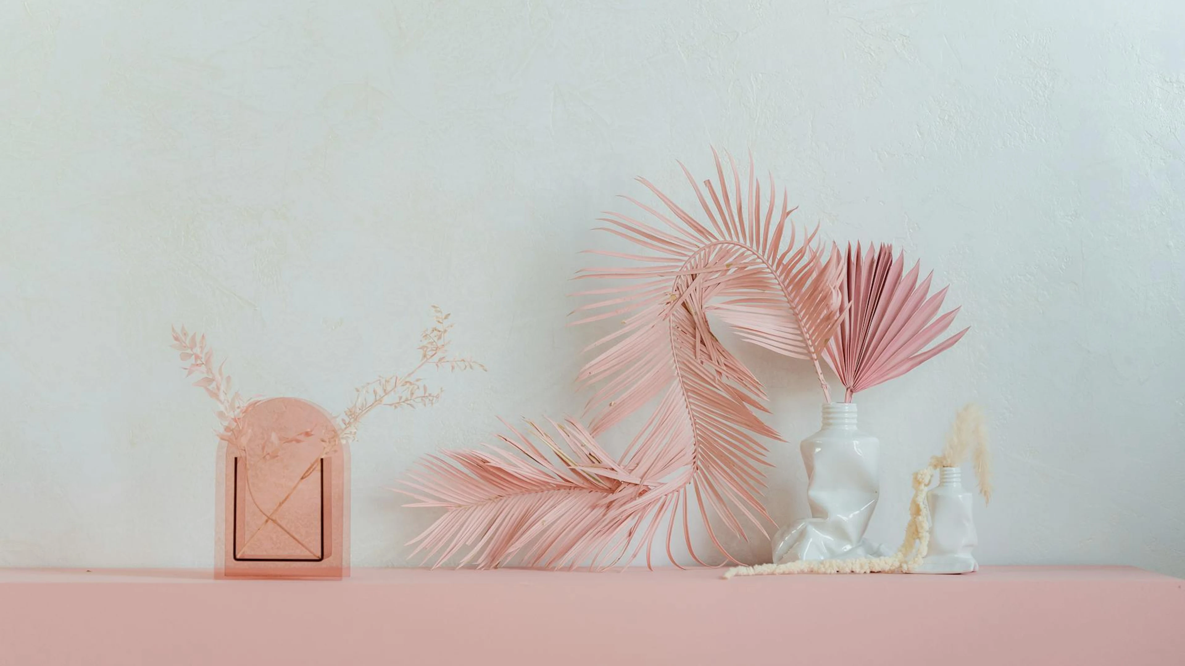 Get this stunning Elegant dried palm leaf arrangement in pink on a pastel background. Ideal for mo wallpaper in 4K Ultra HD quality. 3840x2160 aesthetic wallpaper available for free download.