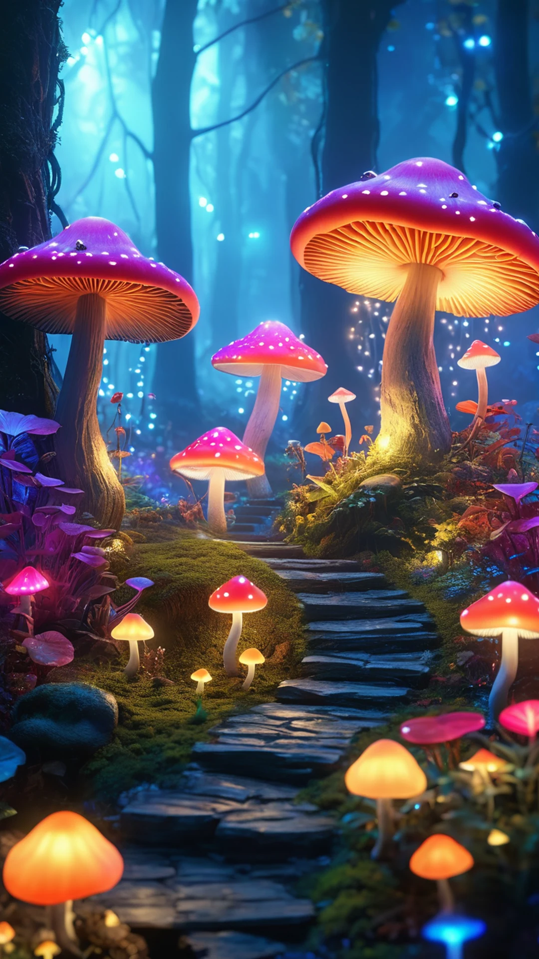 Free Enchanted Mushroom Forest wallpaper in phone resolution (1080x1920). Beautiful fantasy background for your screen. No signup required.