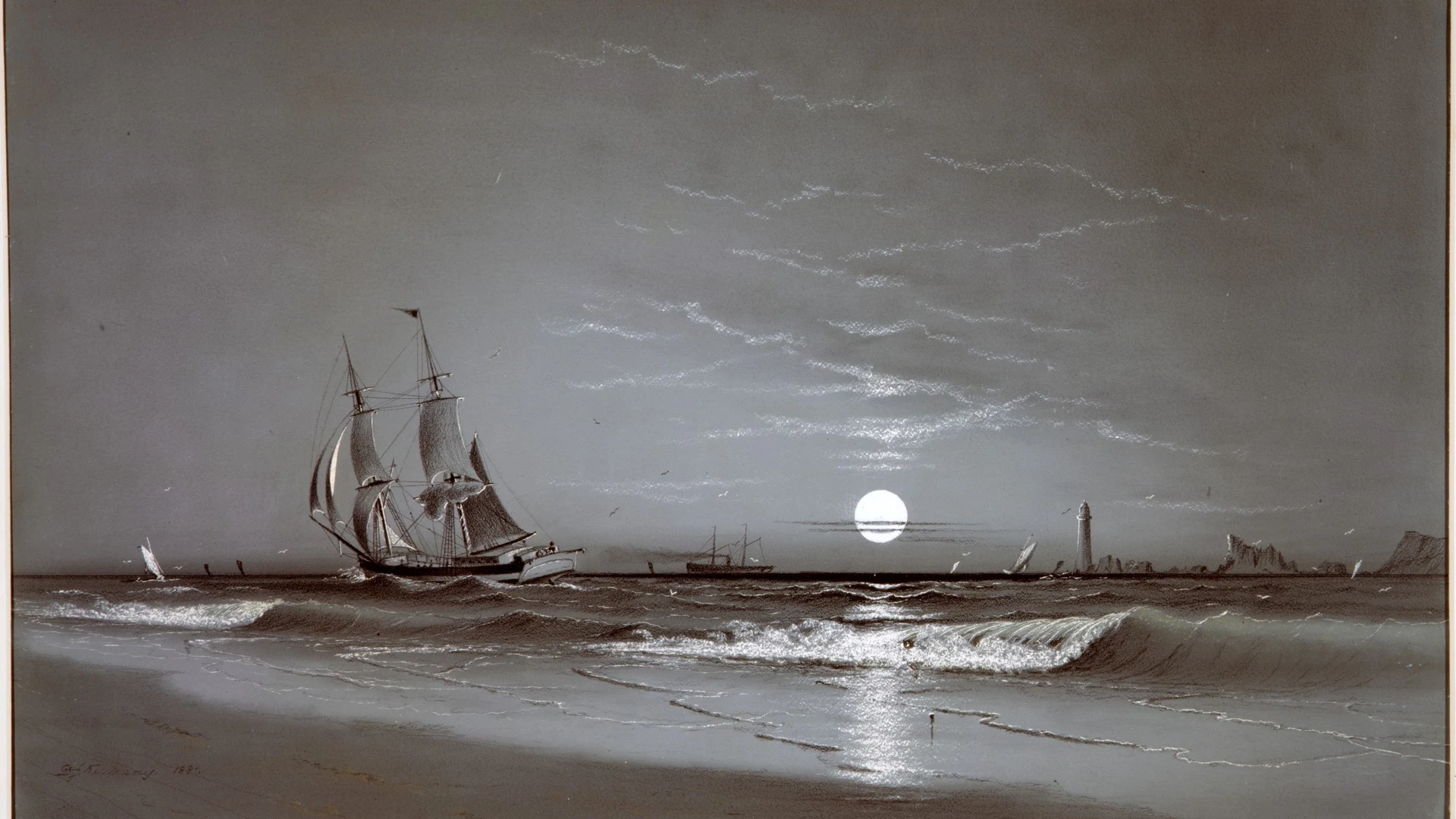 Entrance to Harbor—Moonlight