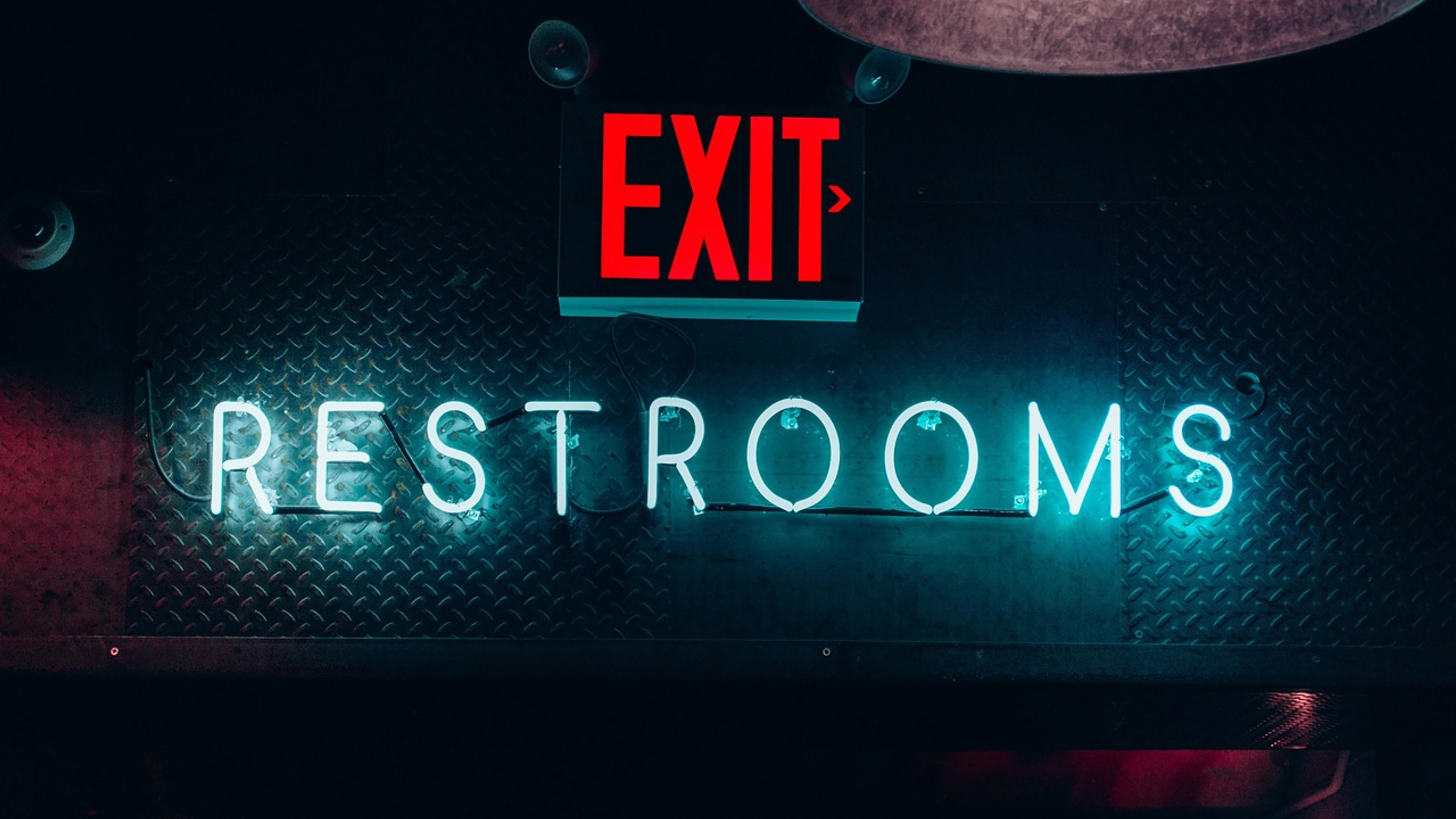 Download Exit sign restrooms wallpaper for free. 3840x2160 4K Ultra HD resolution, perfect for your desktop. High quality neon wallpaper.