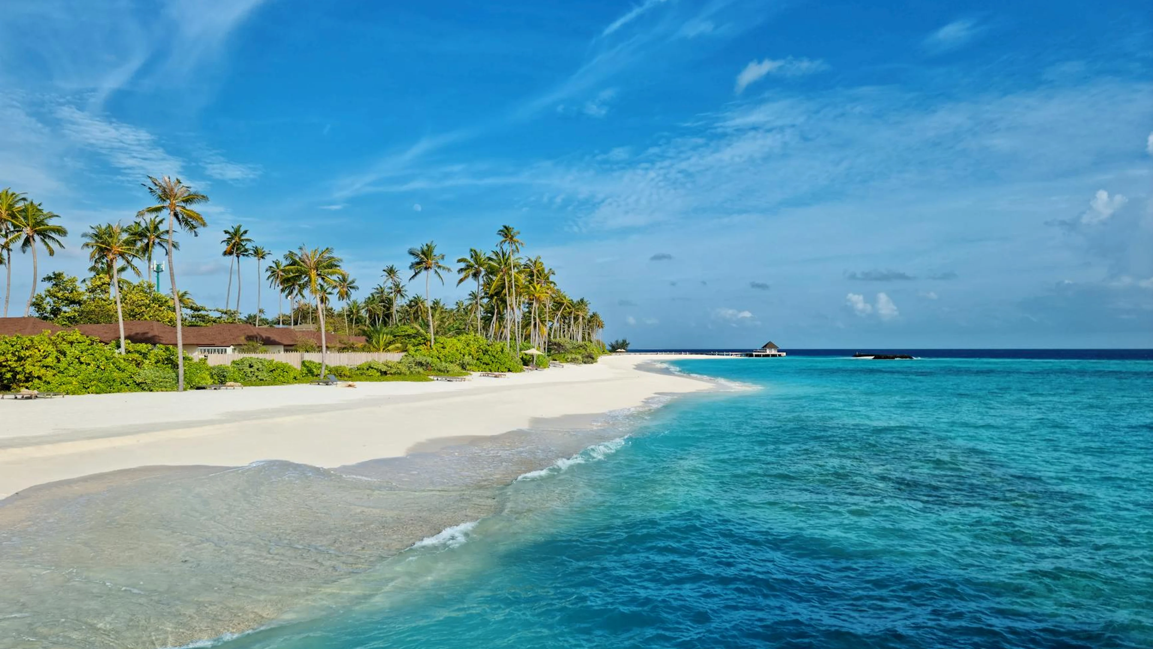 Experience the serene beauty of Maldives with turquoise waters and white sandy b