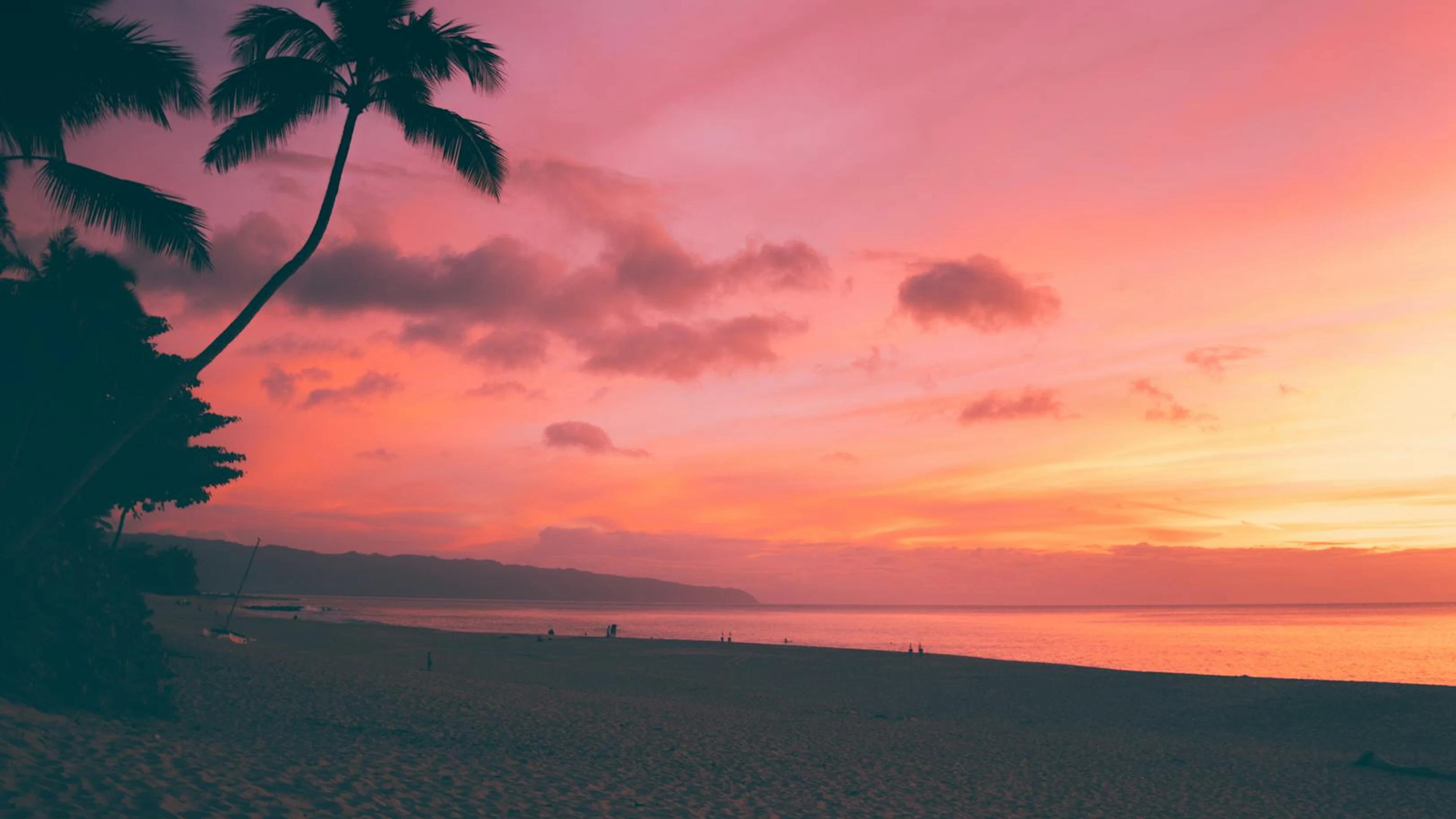 Free Experience the tranquil beauty of a Hawaiian sunset on a serene beach with palm wallpaper in 4K Ultra HD resolution (3840x2160). Beautiful sunset background for your screen. No signup required.