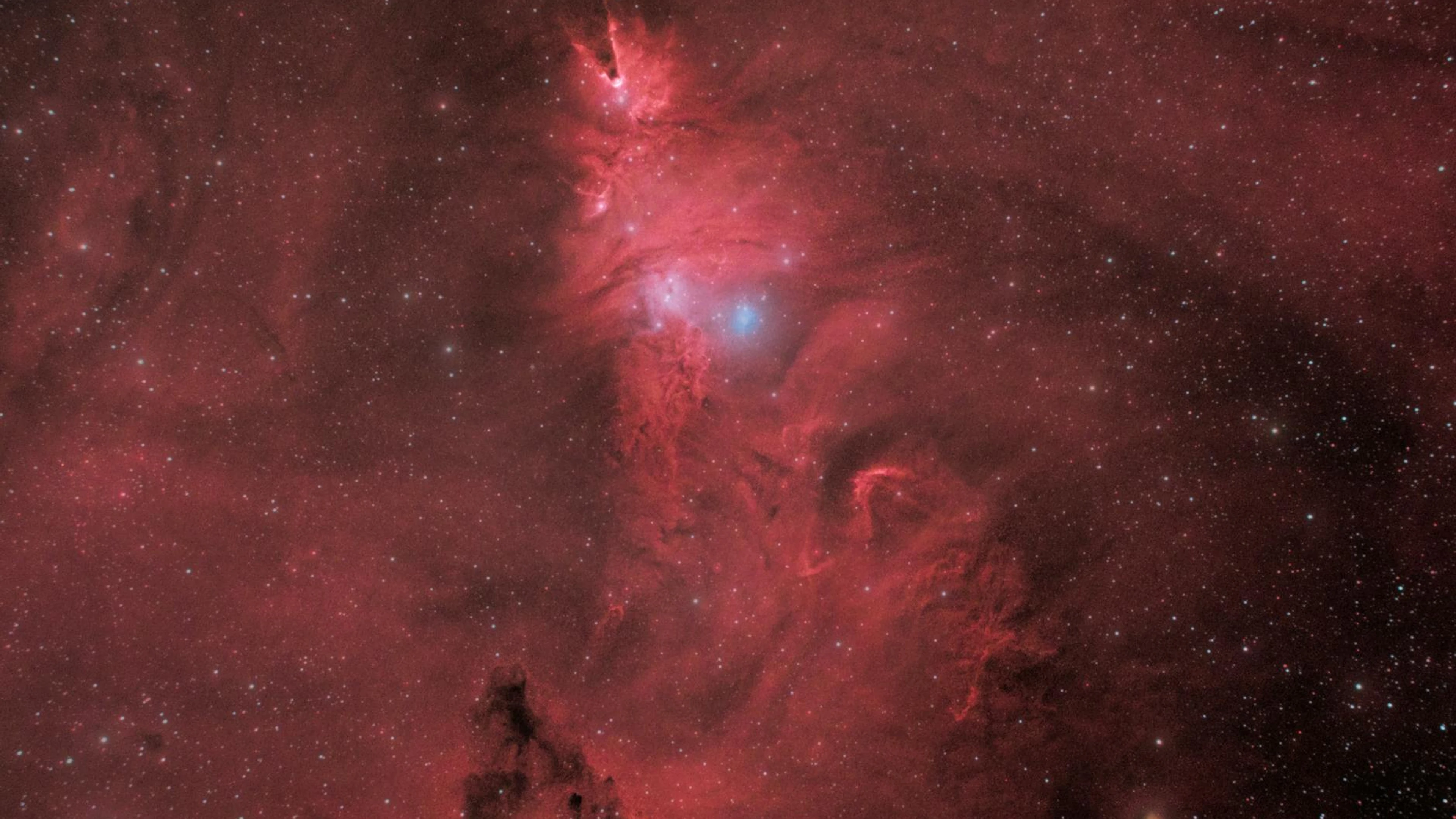 Explore the vibrant colors and intricate shapes of a red nebula amidst a starry