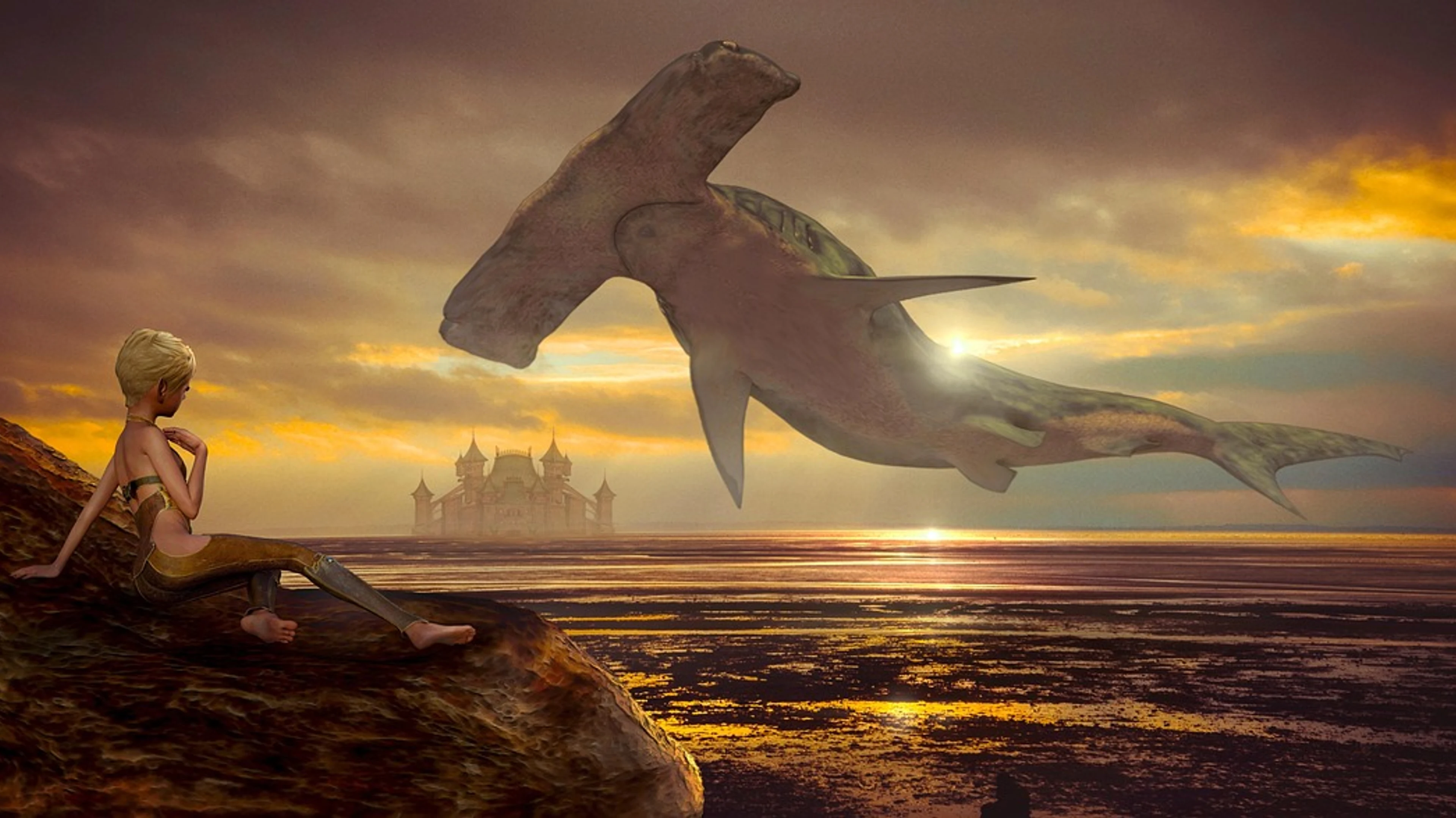 Fantasy hammerhead shark girl - free 4K Ultra HD fantasy wallpaper for desktop
