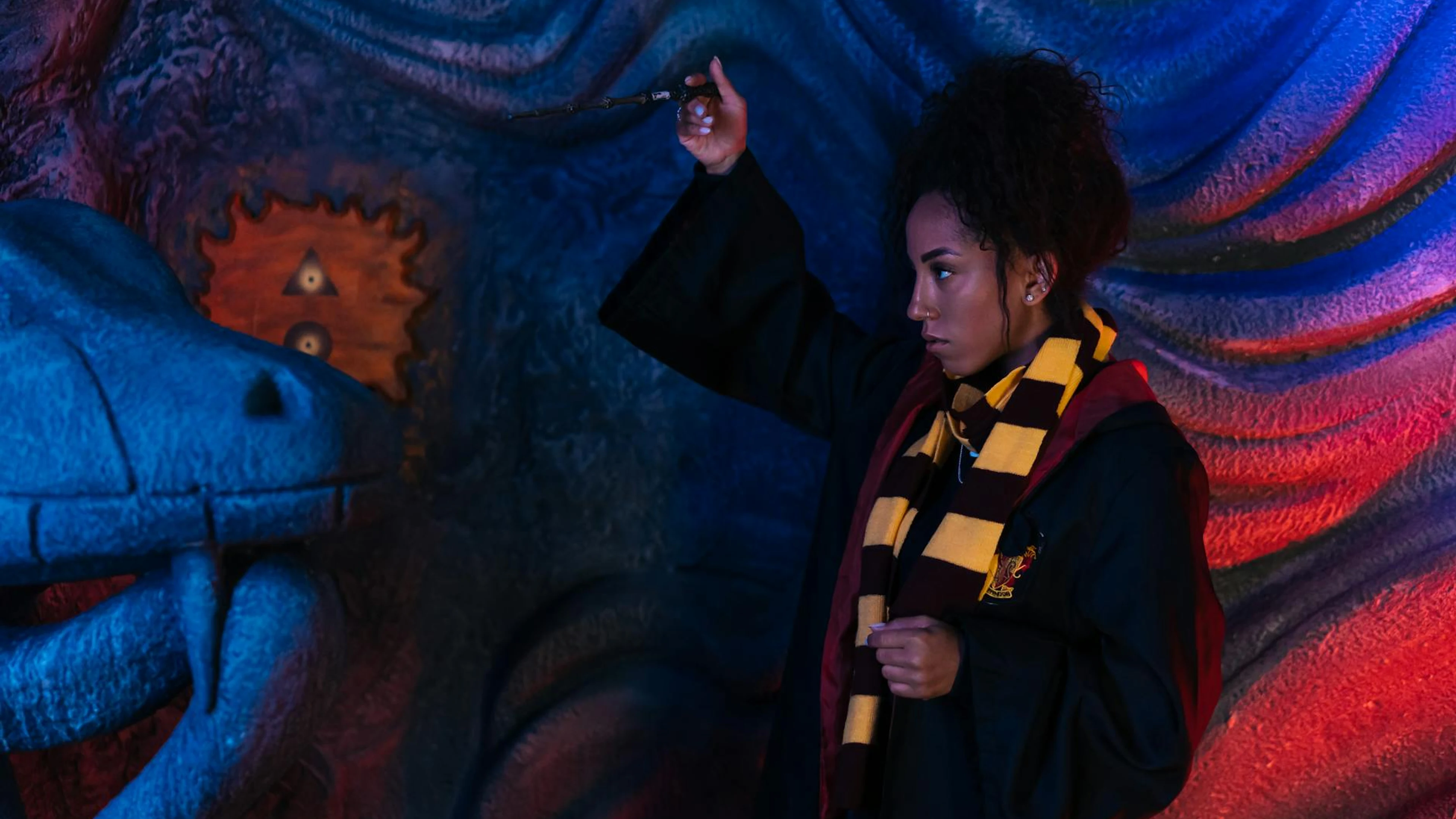 Fantasy-themed image of a wizard holding a wand in a mystical setting with color