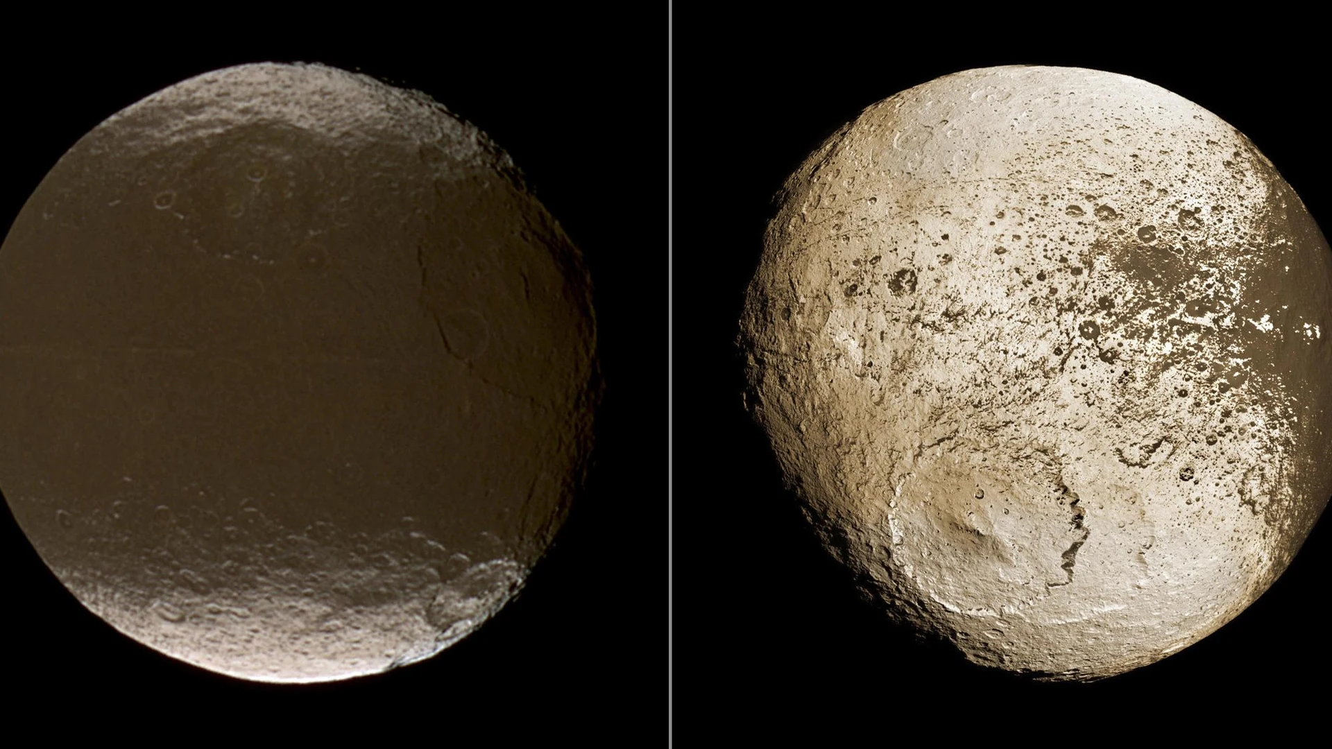 Download Global View of Iapetus Dichotomy wallpaper for free. 1920x1080 tablet resolution, perfect for your desktop. High quality space wallpaper.