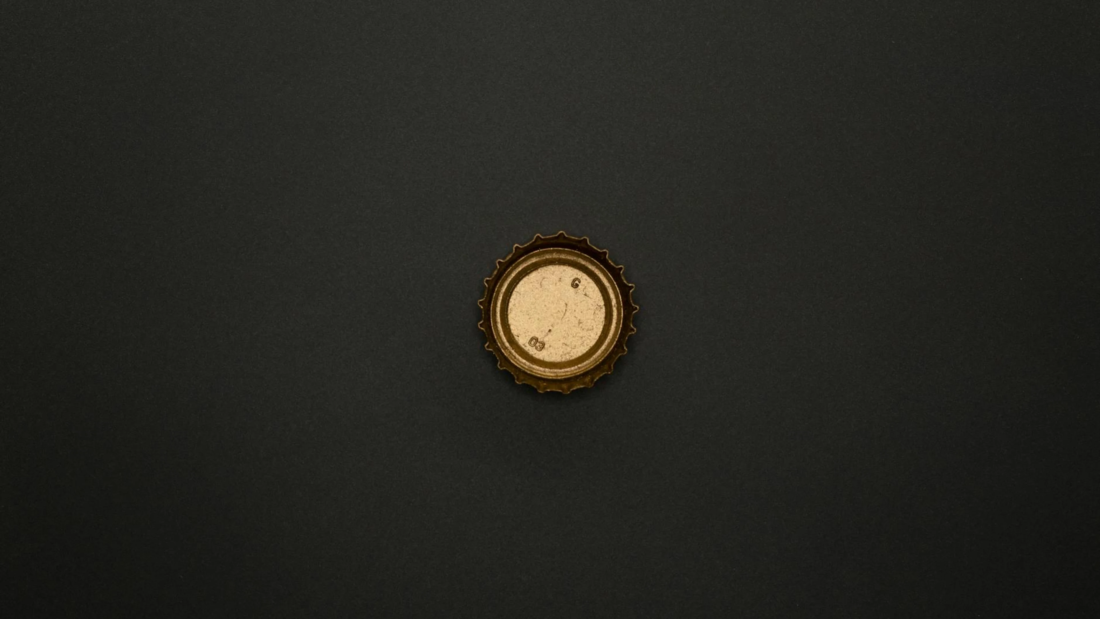 Free Golden bottle cap on a black background, ideal for template and recyclable theme wallpaper in 4K Ultra HD resolution (3840x2160). Beautiful minimal background for your screen. No signup required.
