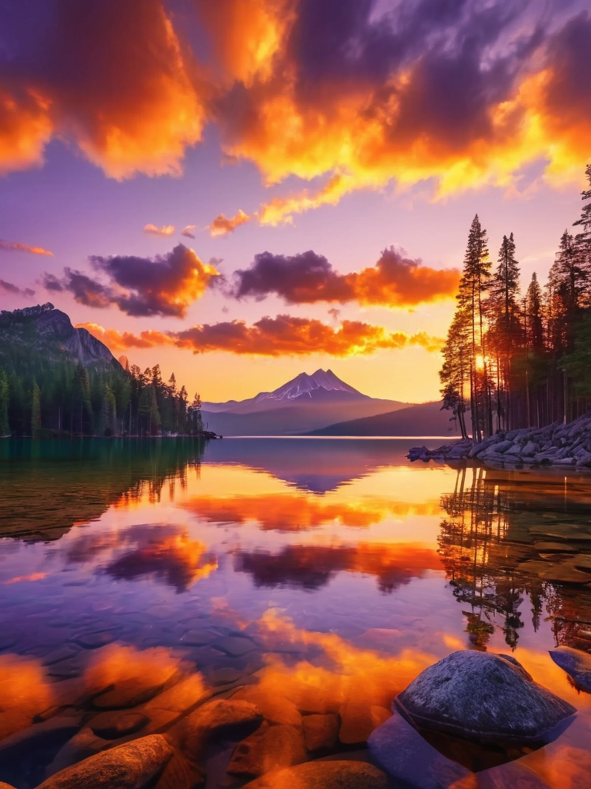 Get this stunning Golden Sunset Over Mountain Lake wallpaper in tablet quality. 2048x2732 nature wallpaper available for free download.