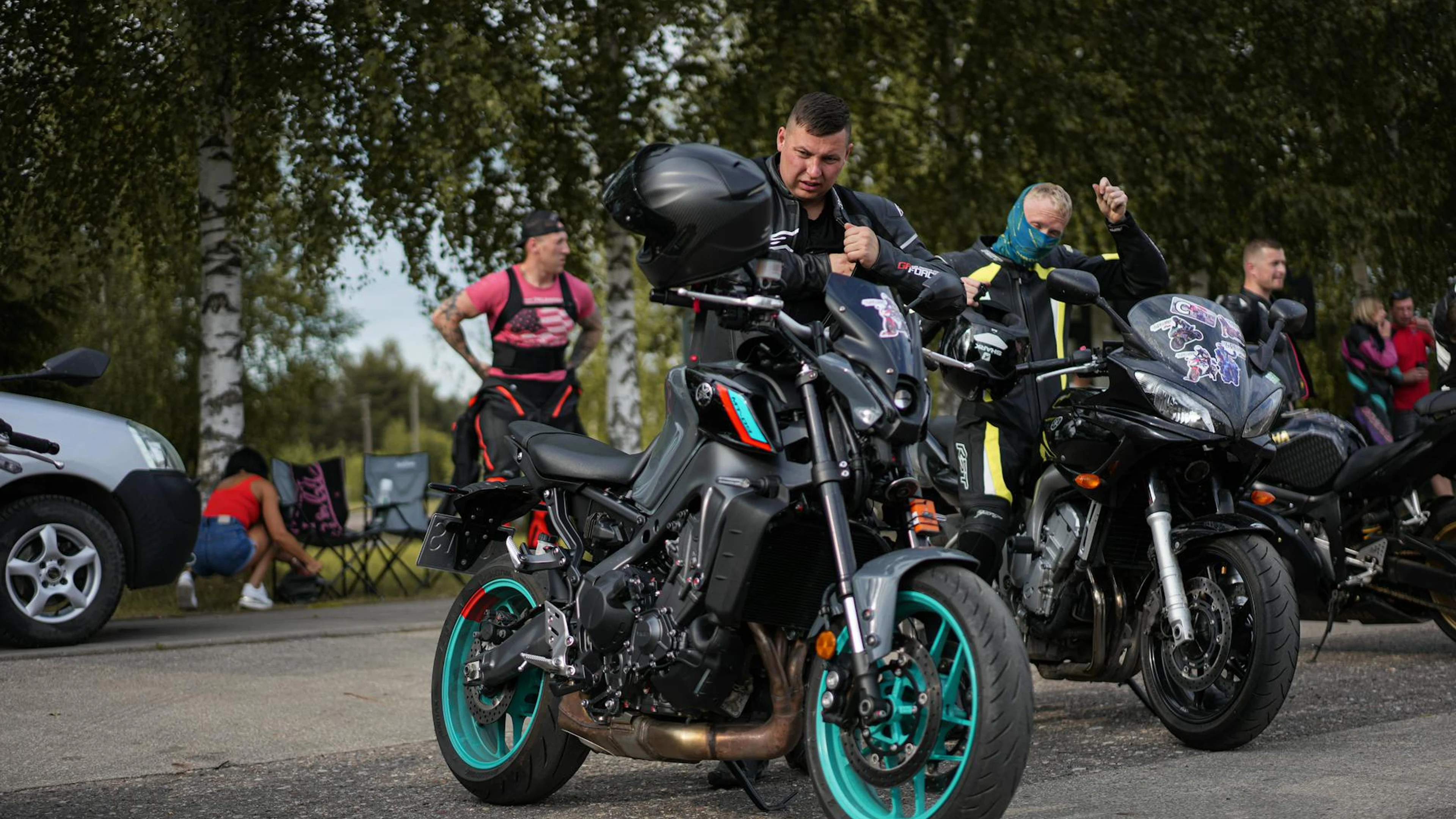 Get this stunning Group of motorcyclists adjusting gear beside bikes at a meetup on a sunny day. wallpaper in 4K Ultra HD quality. 3840x2160 motorcycle wallpaper available for free download.