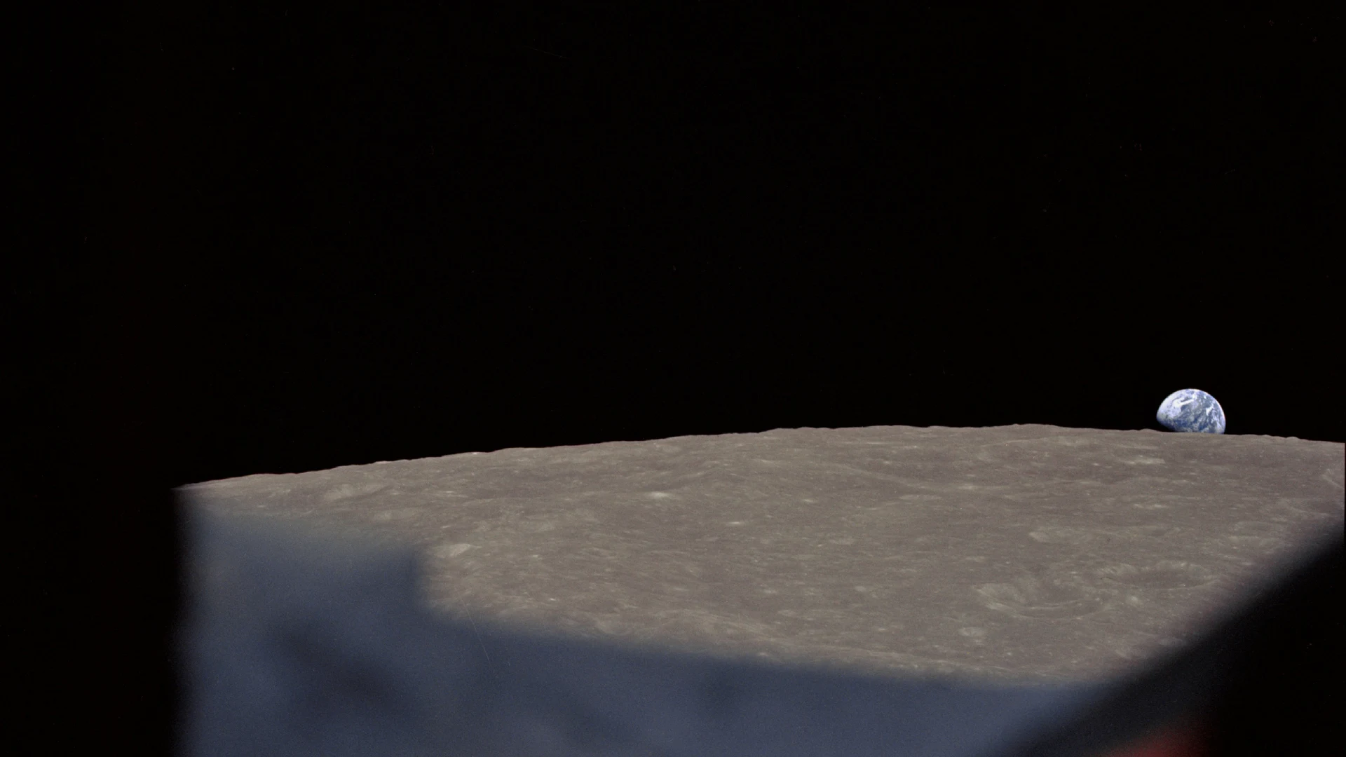 Download High-oblique view of Moon's surface showing earth rising above horizon wallpaper for free. 1920x1080 tablet resolution, perfect for your desktop. High quality space wallpaper.