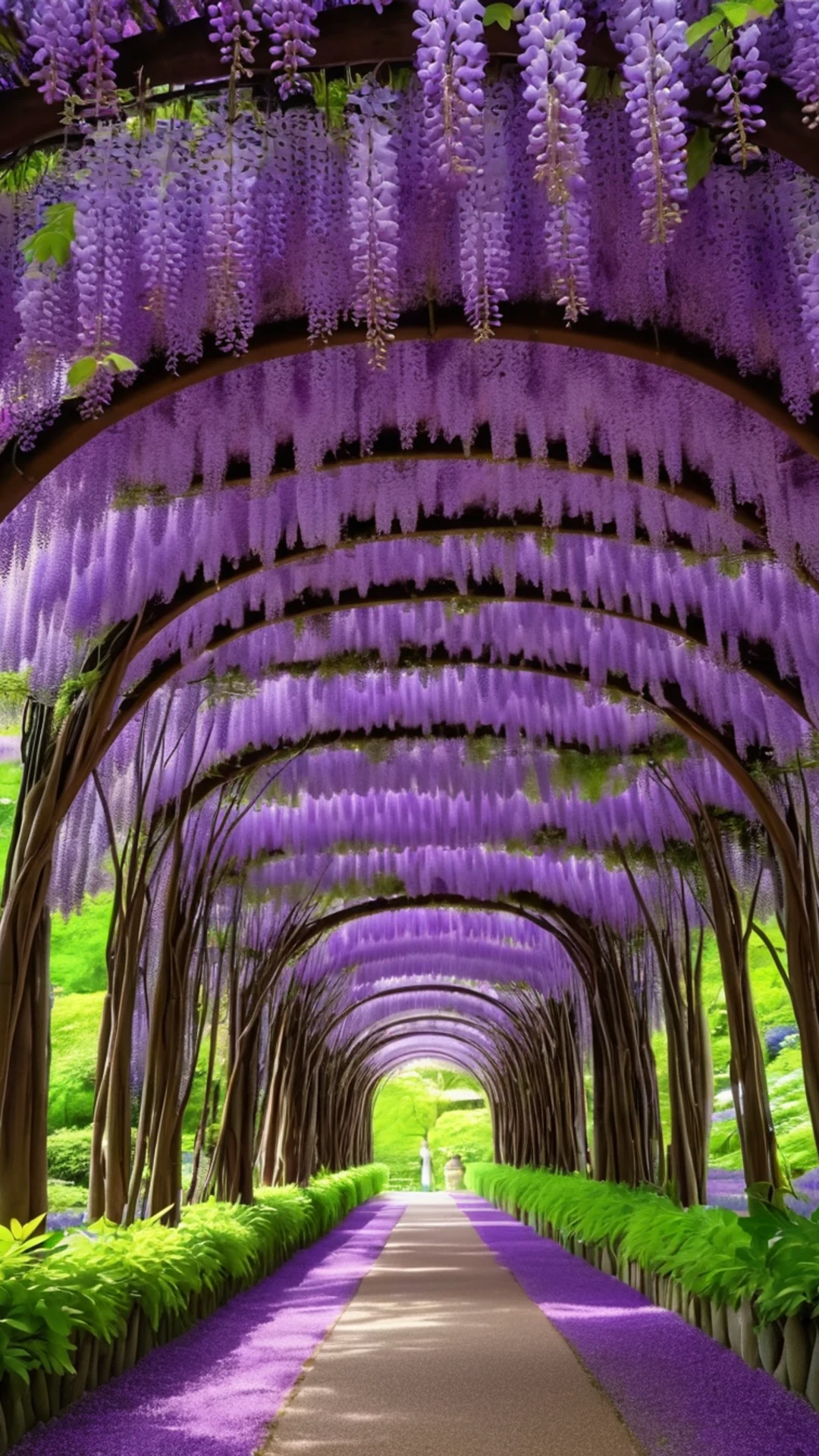 Download Japanese Wisteria Tunnel wallpaper for free. 1080x1920 phone resolution, perfect for your phone. High quality flowers wallpaper.