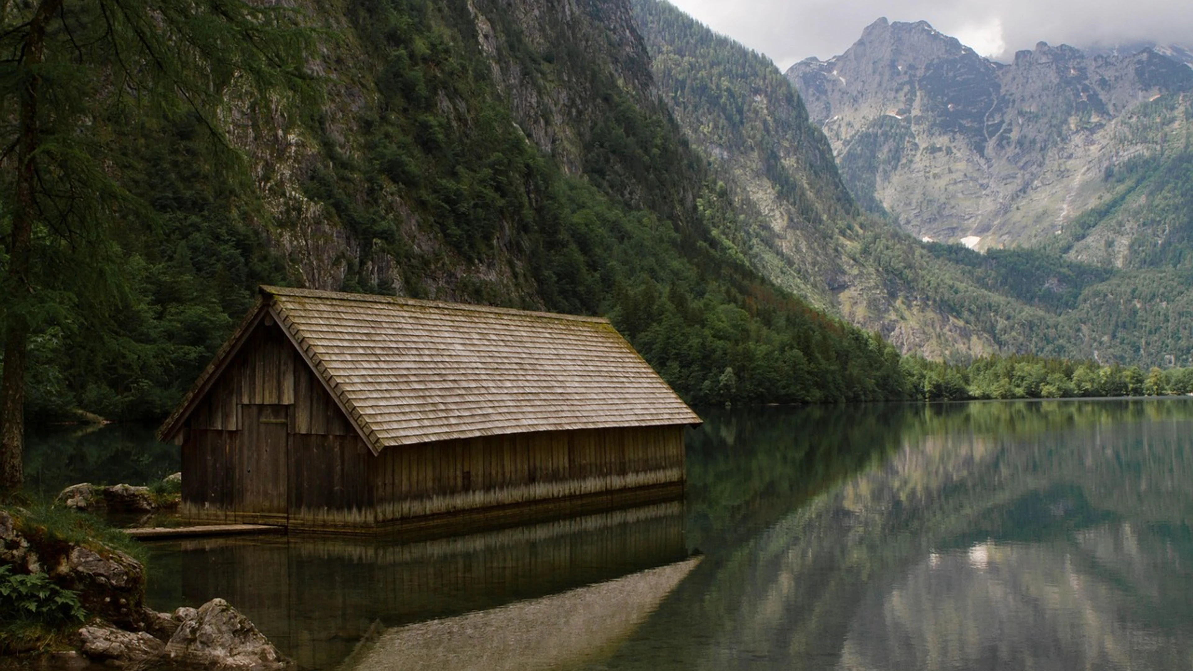Lake house mountains - free 4K Ultra HD nature wallpaper for desktop