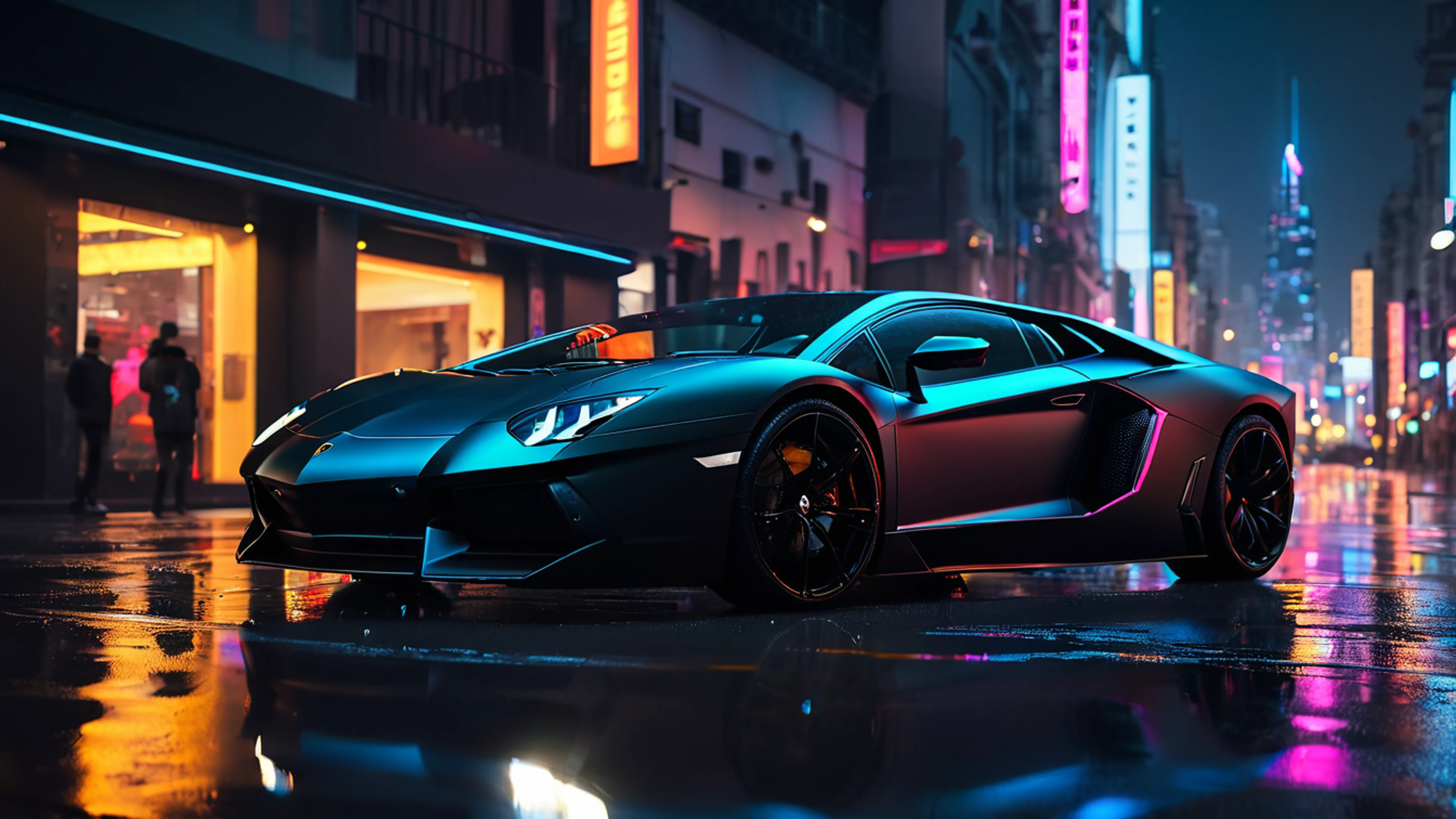 Download Lamborghini Neon City wallpaper for free. 3840x2160 4K Ultra HD resolution, perfect for your desktop. High quality cars wallpaper.