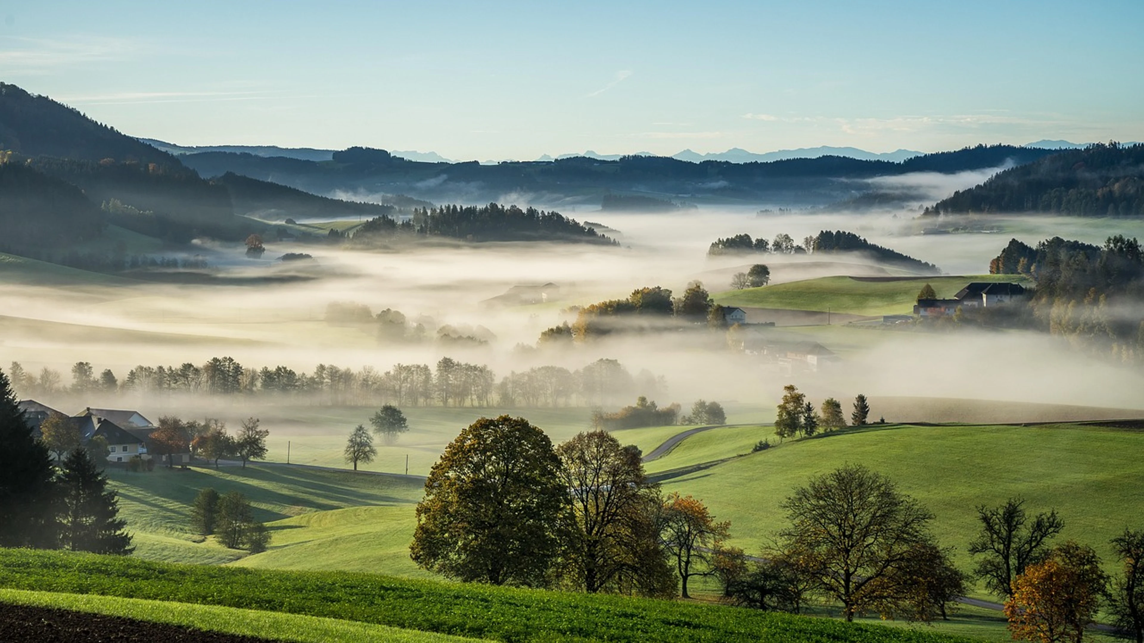 Free Mühlviertel rural fog wallpaper in 4K Ultra HD resolution (3840x2160). Beautiful nature background for your screen. No signup required.