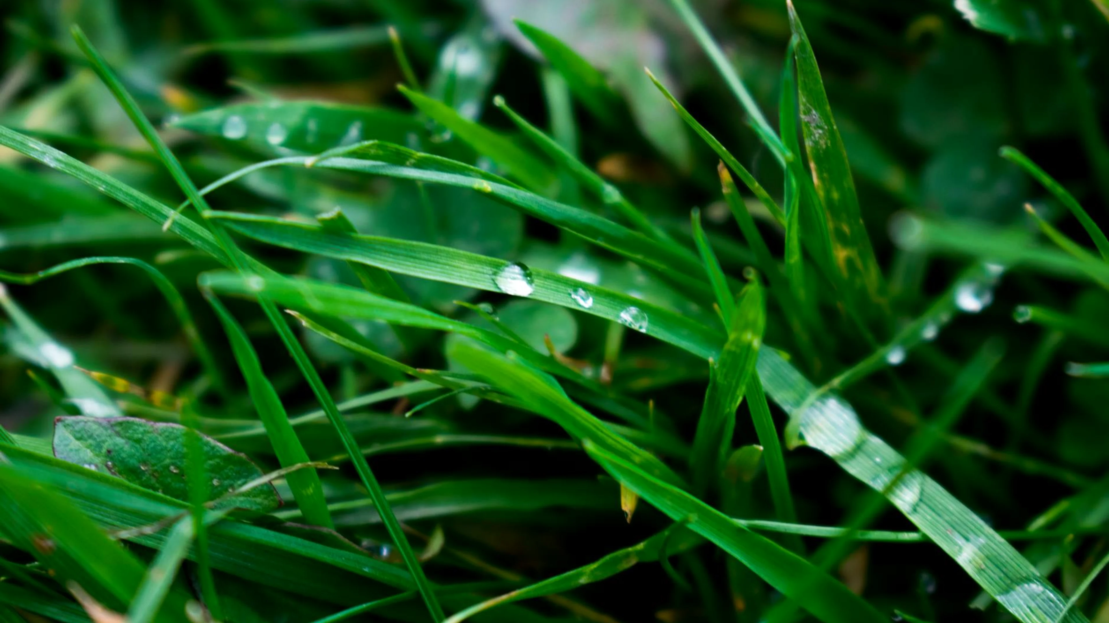 Get this stunning Macro shot of fresh green blades of grass with dewdrops, showcasing natural beau wallpaper in 4K Ultra HD quality. 3840x2160 macro wallpaper available for free download.