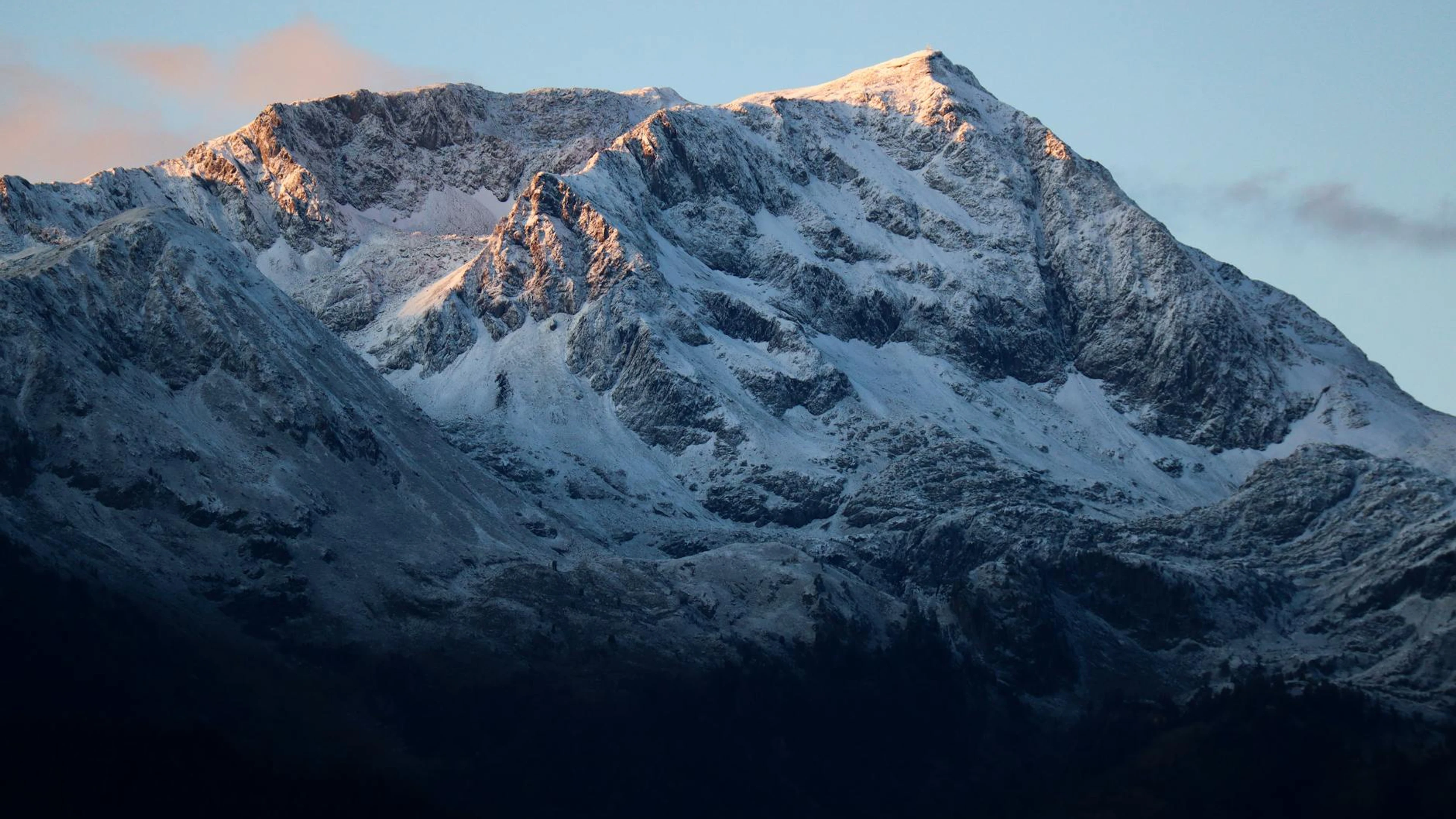 Download Majestic snow-covered mountain peaks at dawn in the Auvergne-Rhône-Alpes region, wallpaper for free. 3840x2160 4K Ultra HD resolution, perfect for your desktop. High quality mountain wallpaper.