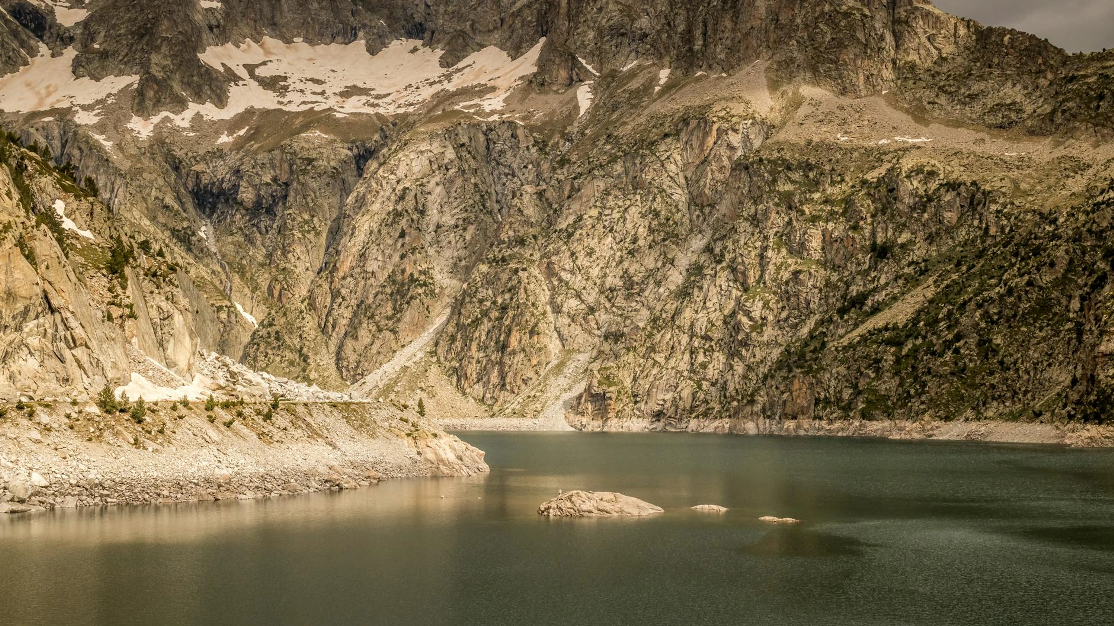 Download Majestic view of the rugged mountains and tranquil lake in Aragnouet, France. wallpaper for free. 3840x2160 4K Ultra HD resolution, perfect for your desktop. High quality mountain wallpaper.