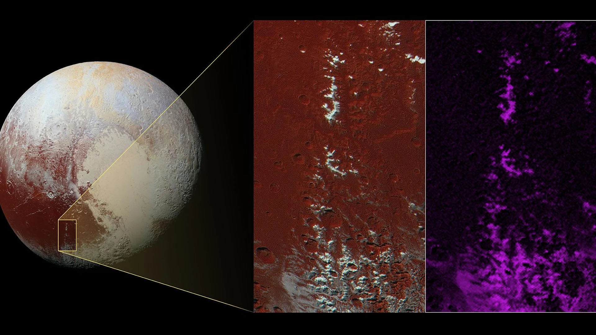 Methane Snow on Pluto Peaks - free hd space wallpaper for desktop