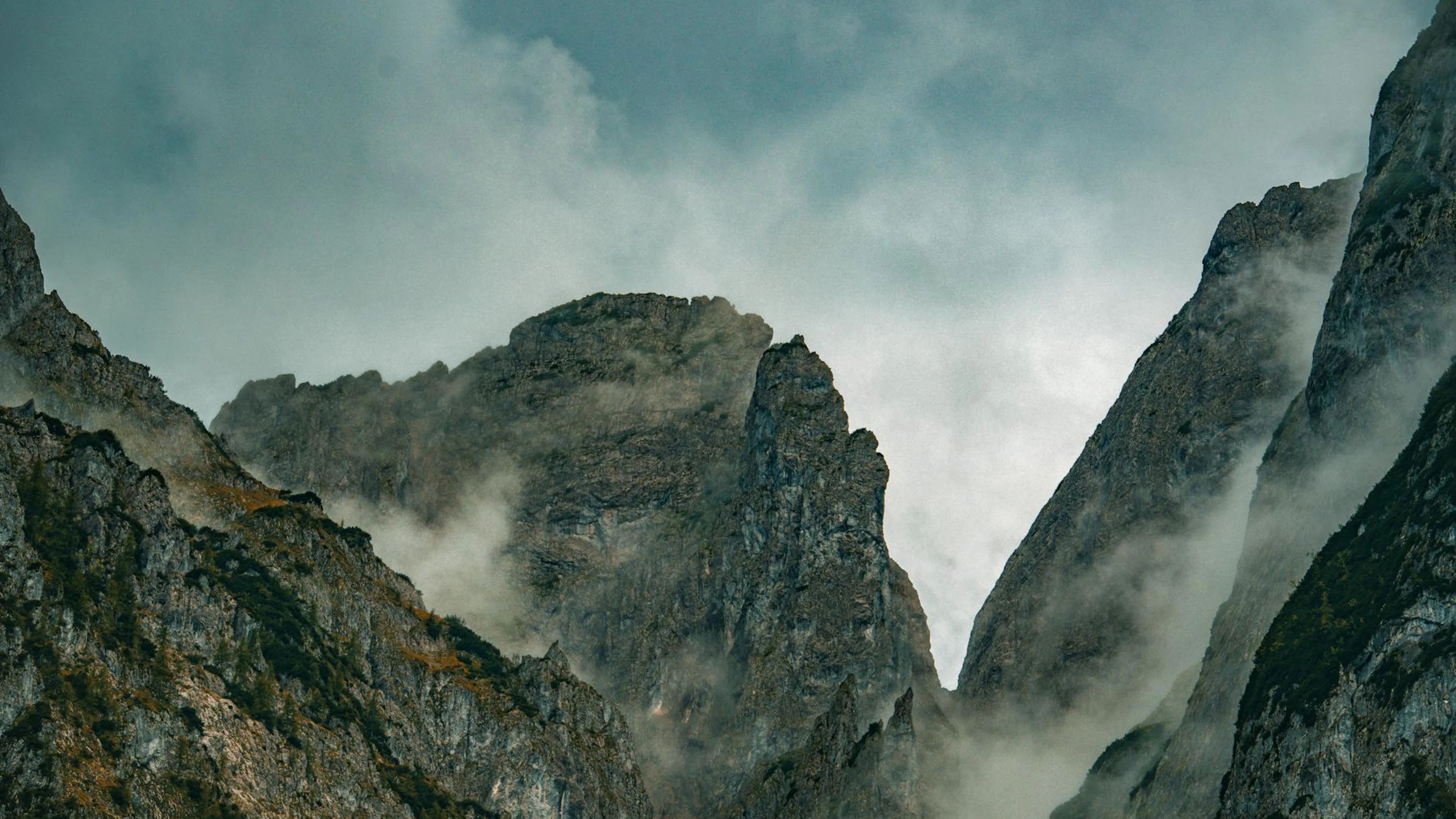 Get this stunning Misty and dramatic mountain peaks in Gosau, Austria, captured in vivid detail. wallpaper in 4K Ultra HD quality. 3840x2160 mountain wallpaper available for free download.