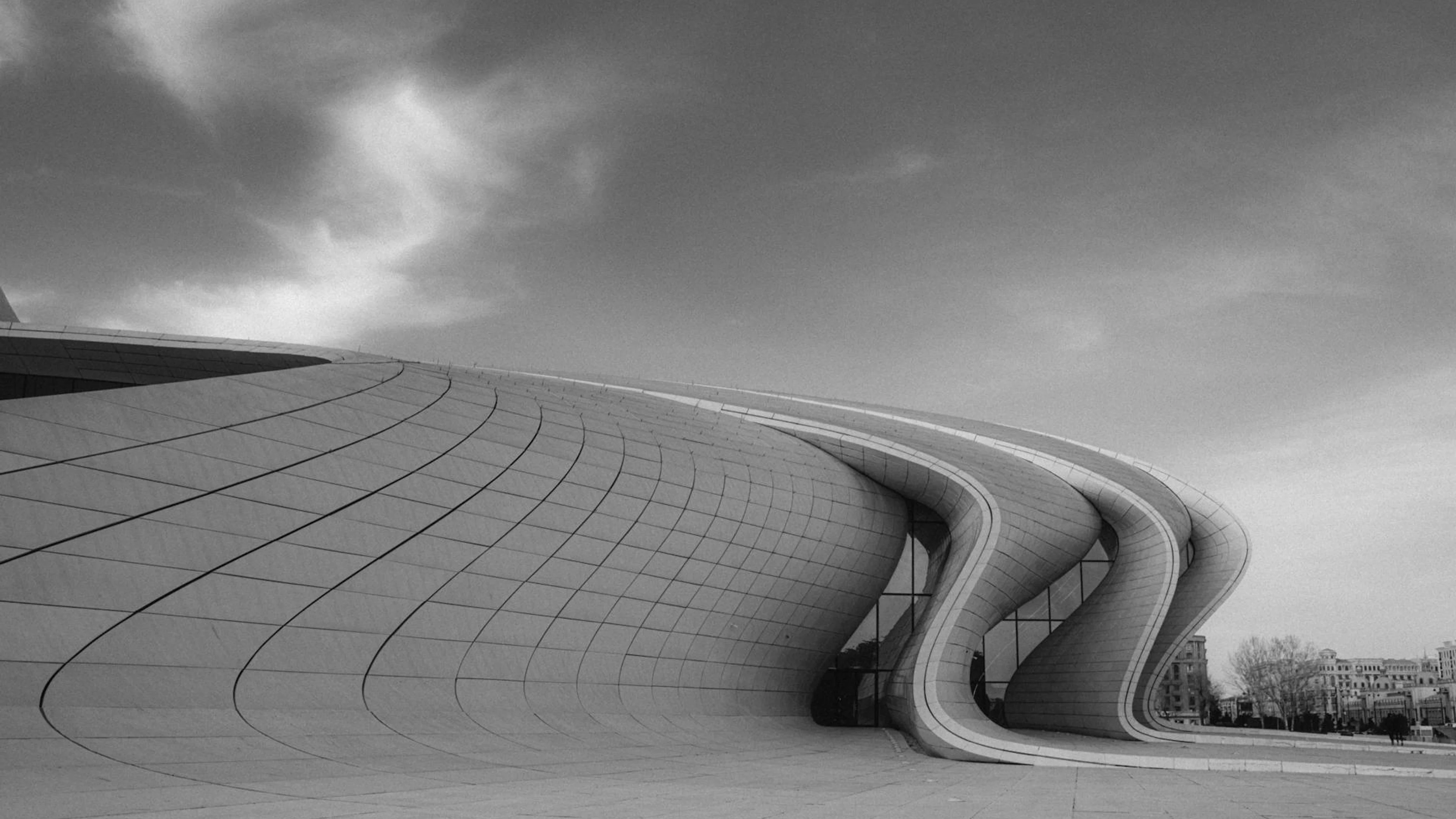 Get this stunning Modern architectural marvel in Baku, showcasing flowing curves and futuristic de wallpaper in 4K Ultra HD quality. 3840x2160 architecture wallpaper available for free download.