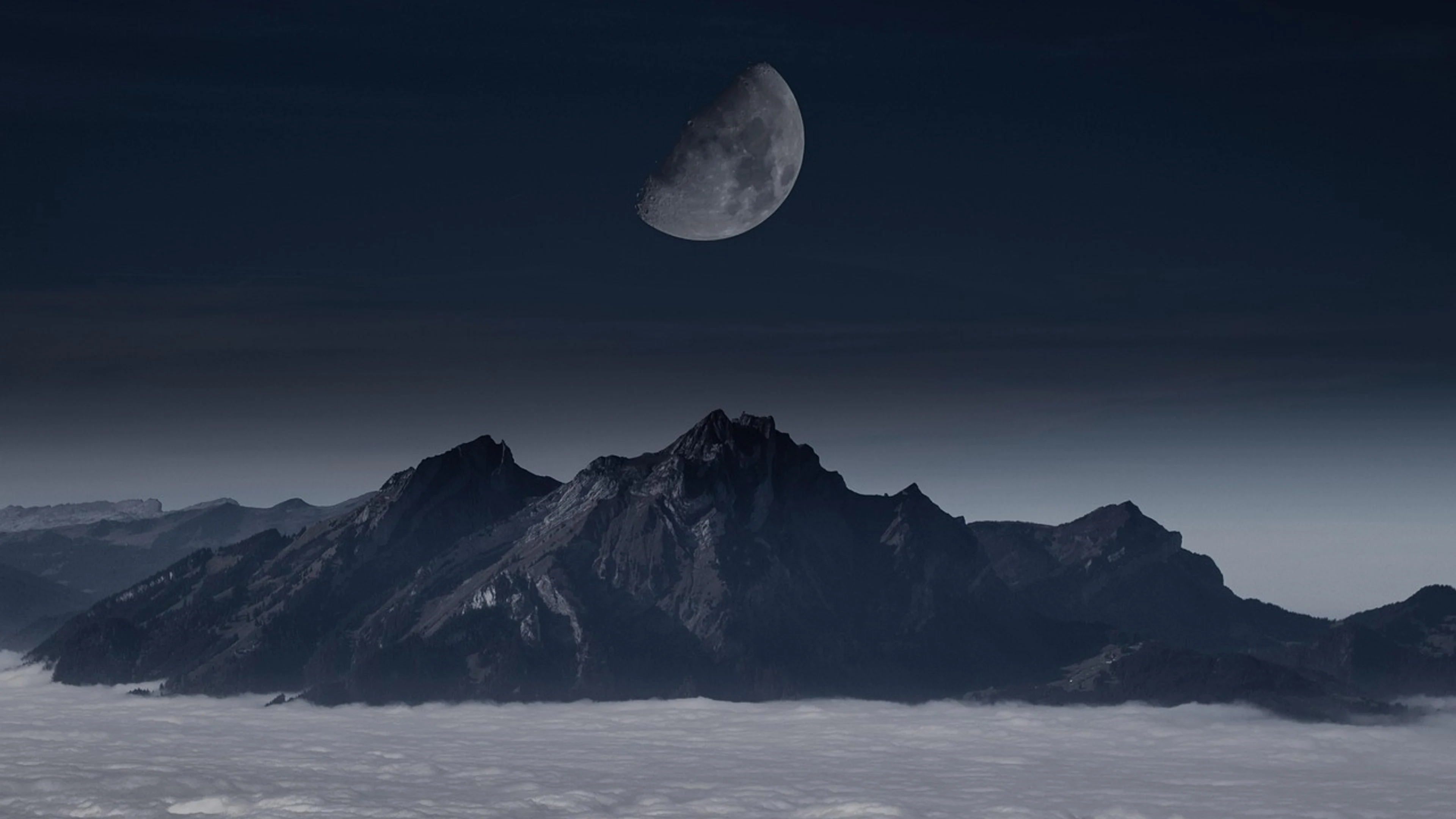 Get this stunning Moon mountain night sky wallpaper in 4K Ultra HD quality. 3840x2160 dark wallpaper available for free download.