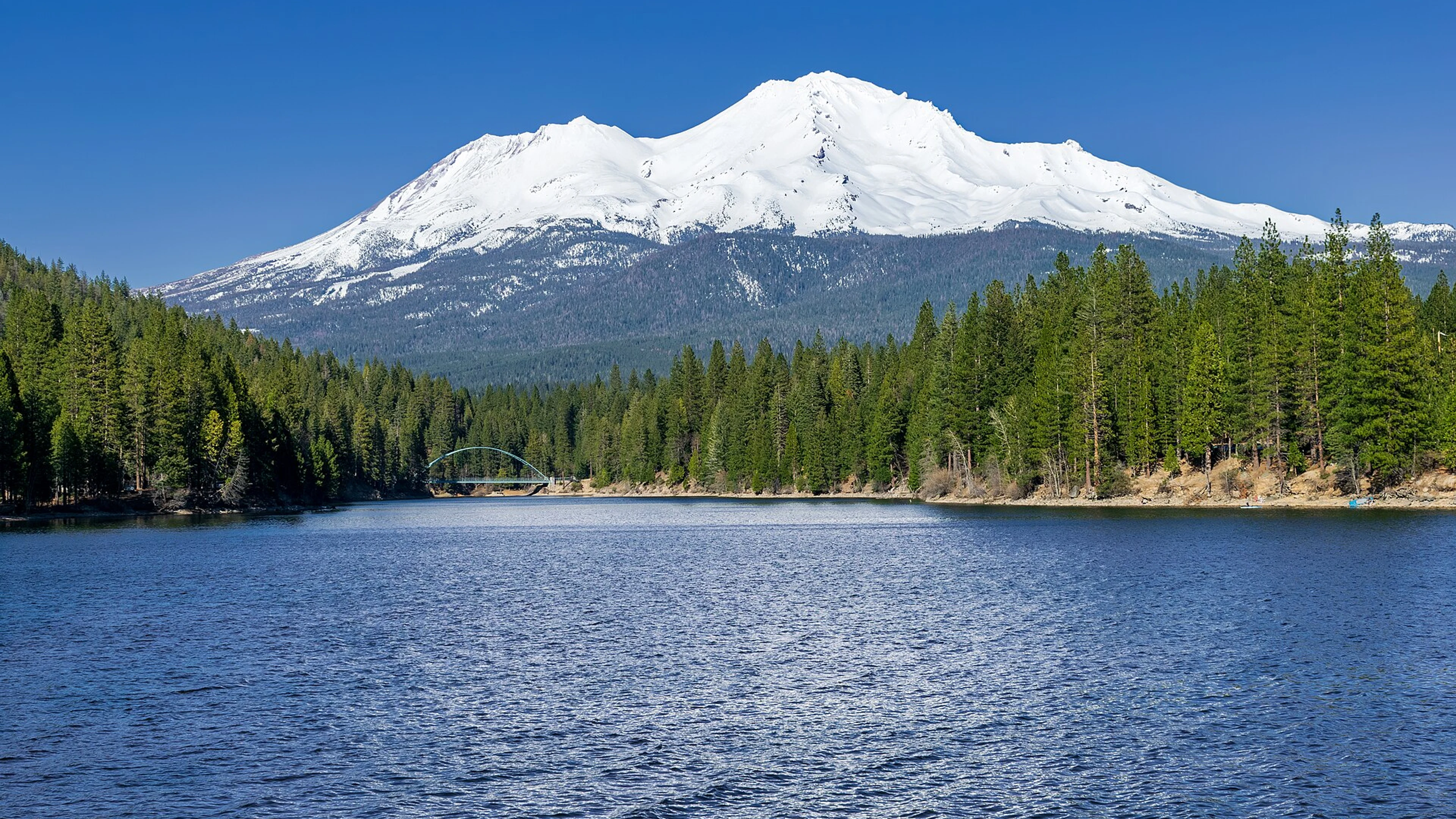 Download Mount Shasta, Lake Siskiyou, SW view wallpaper for free. 3840x2160 4K Ultra HD resolution, perfect for your desktop. High quality lake wallpaper.