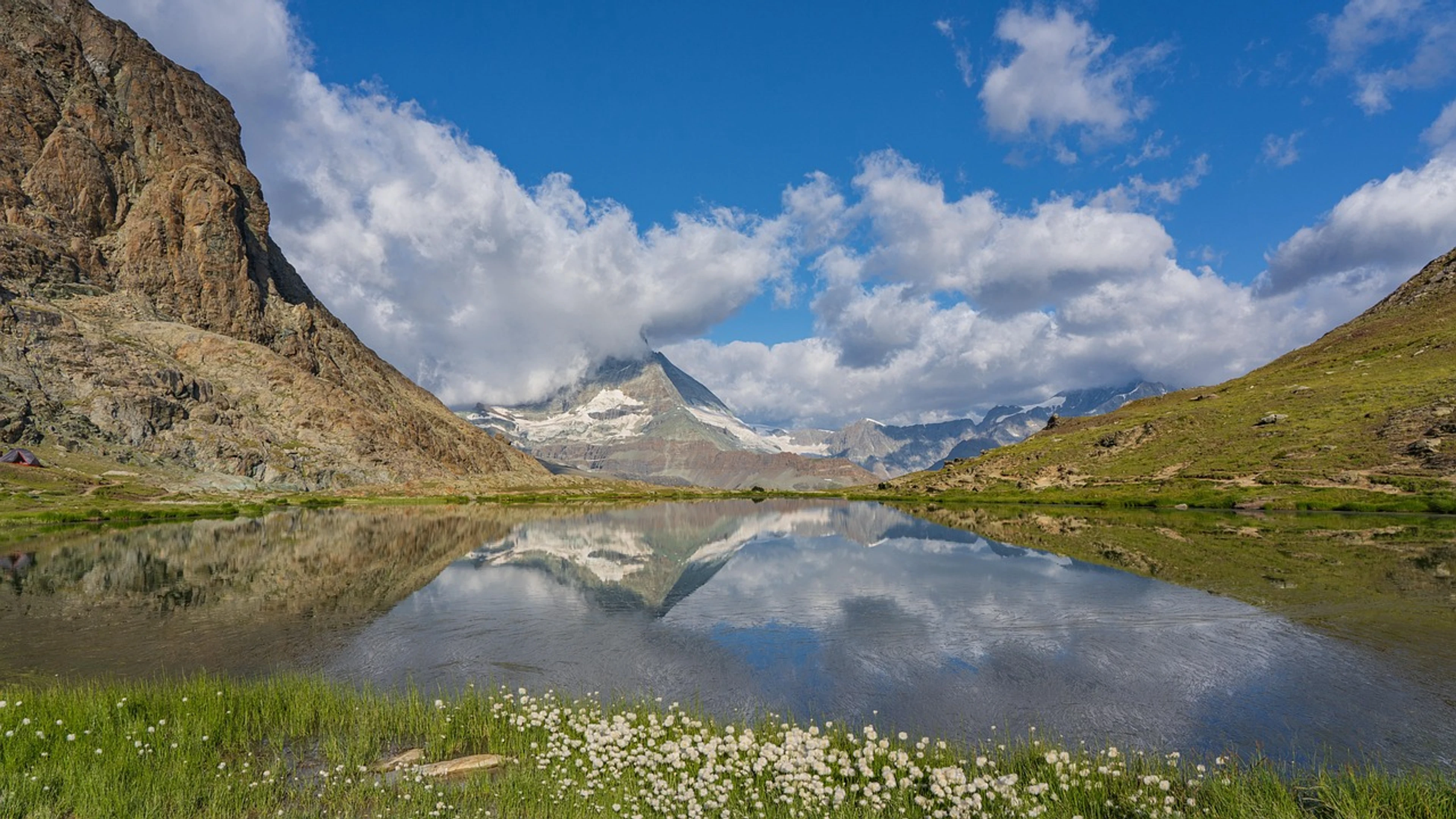 Get this stunning Mountain landscape matterhorn mountain lake wallpaper in 4K Ultra HD quality. 3840x2160 lake wallpaper available for free download.
