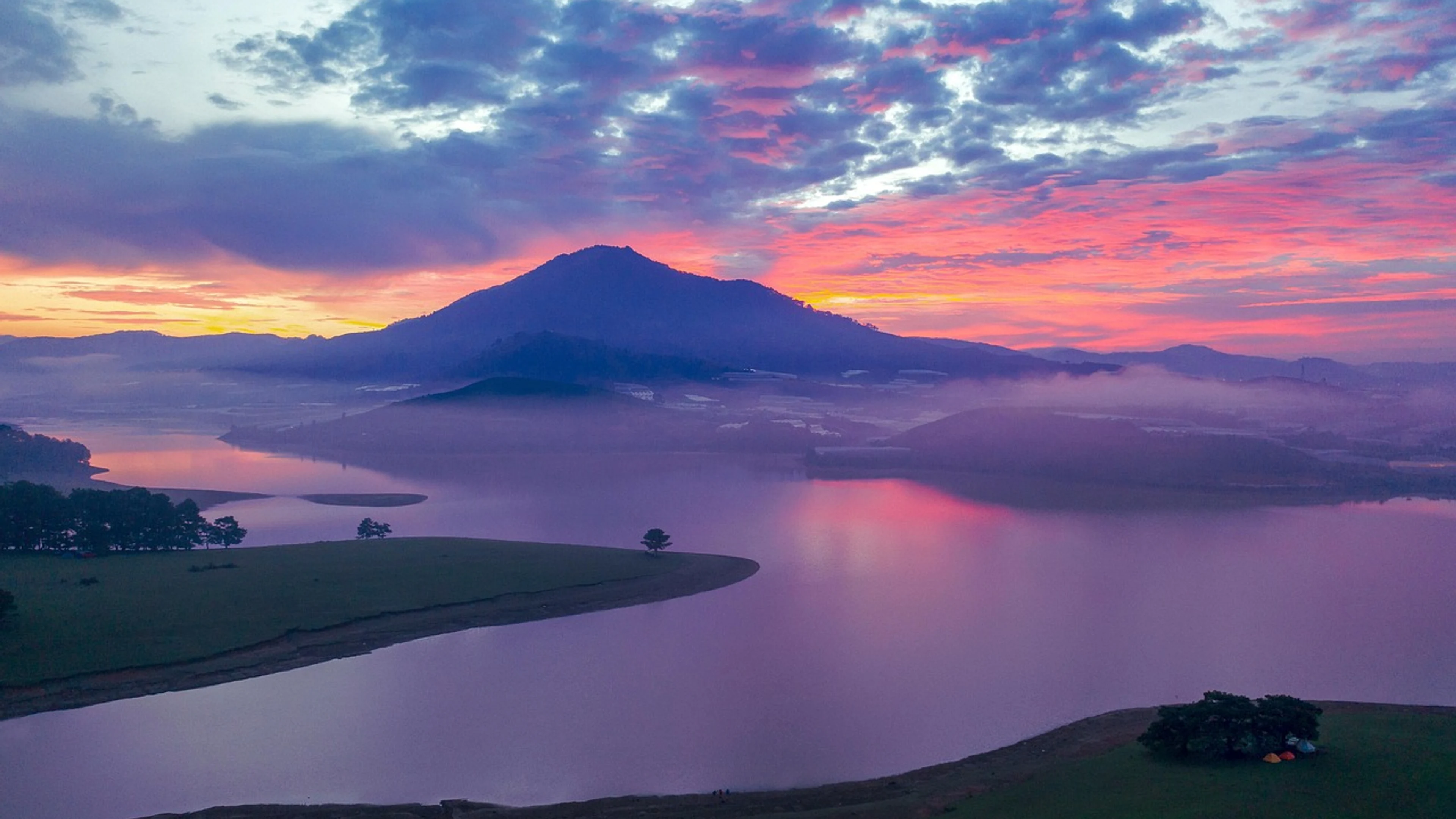 Free Mountain nature dusk wallpaper in 4K Ultra HD resolution (3840x2160). Beautiful lake background for your screen. No signup required.