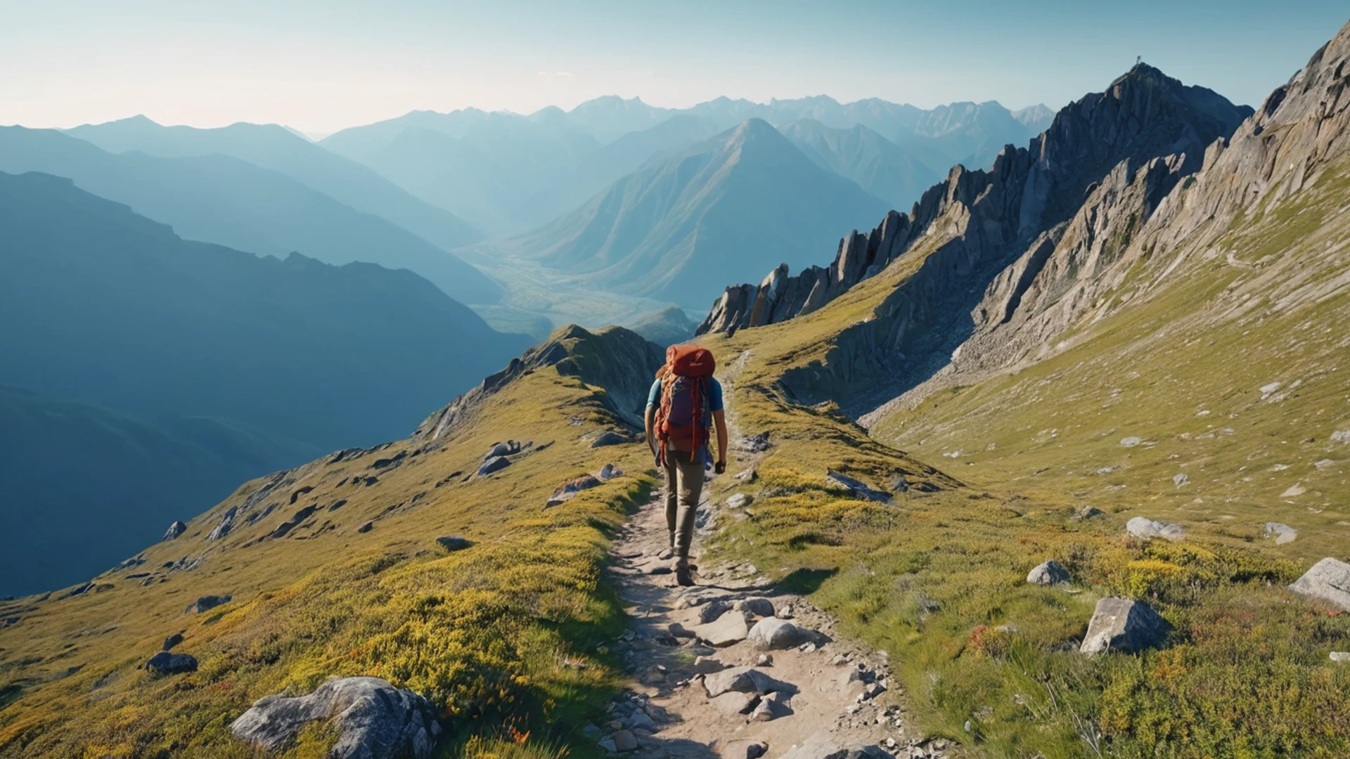 Download Mountain Trail Adventure wallpaper for free. 1920x1080 tablet resolution, perfect for your desktop. High quality mountain wallpaper.