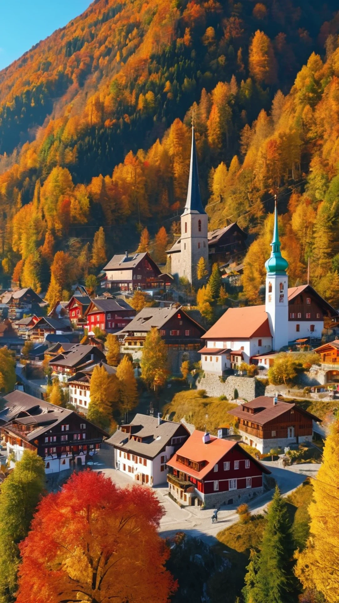 Free Mountain Village Autumn wallpaper in phone resolution (1080x1920). Beautiful mountain background for your screen. No signup required.