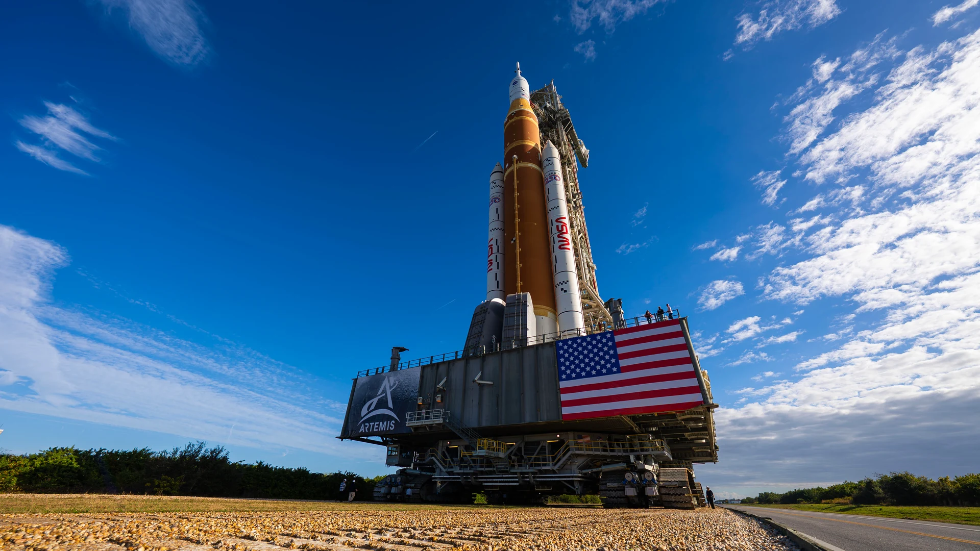 Get this stunning NASA's SLS Rocket and Orion Spacecraft Rollout to Launch Pad 39B wallpaper in tablet quality. 1920x1080 space wallpaper available for free download.