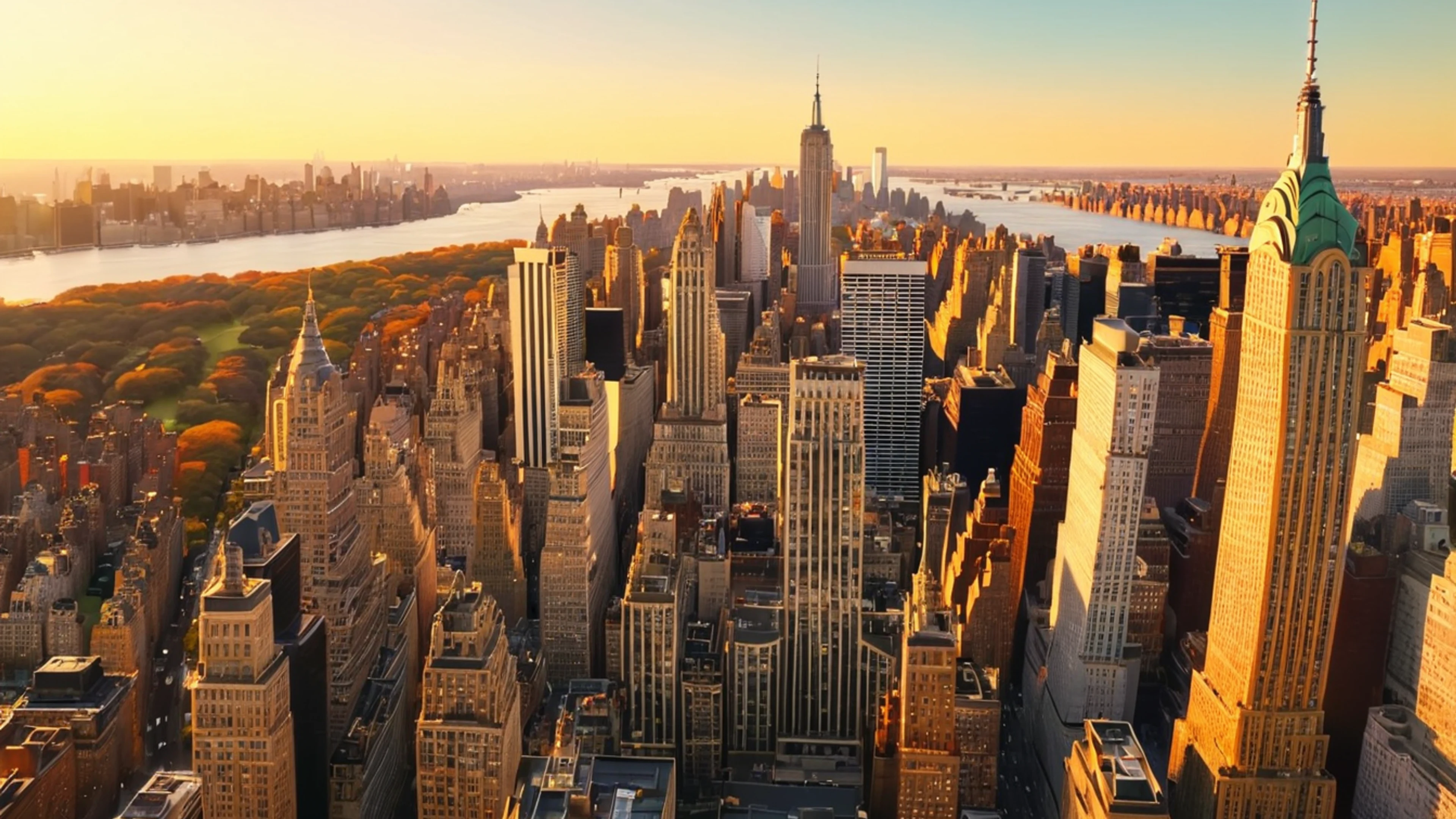 Free New York Aerial Golden Hour wallpaper in 4K Ultra HD resolution (3840x2160). Beautiful city background for your screen. No signup required.