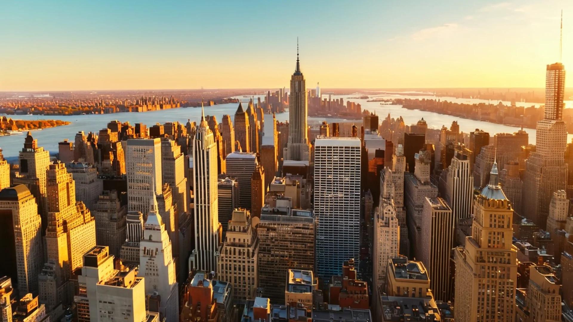 Free New York Aerial Golden Hour wallpaper in tablet resolution (1920x1080). Beautiful city background for your screen. No signup required.