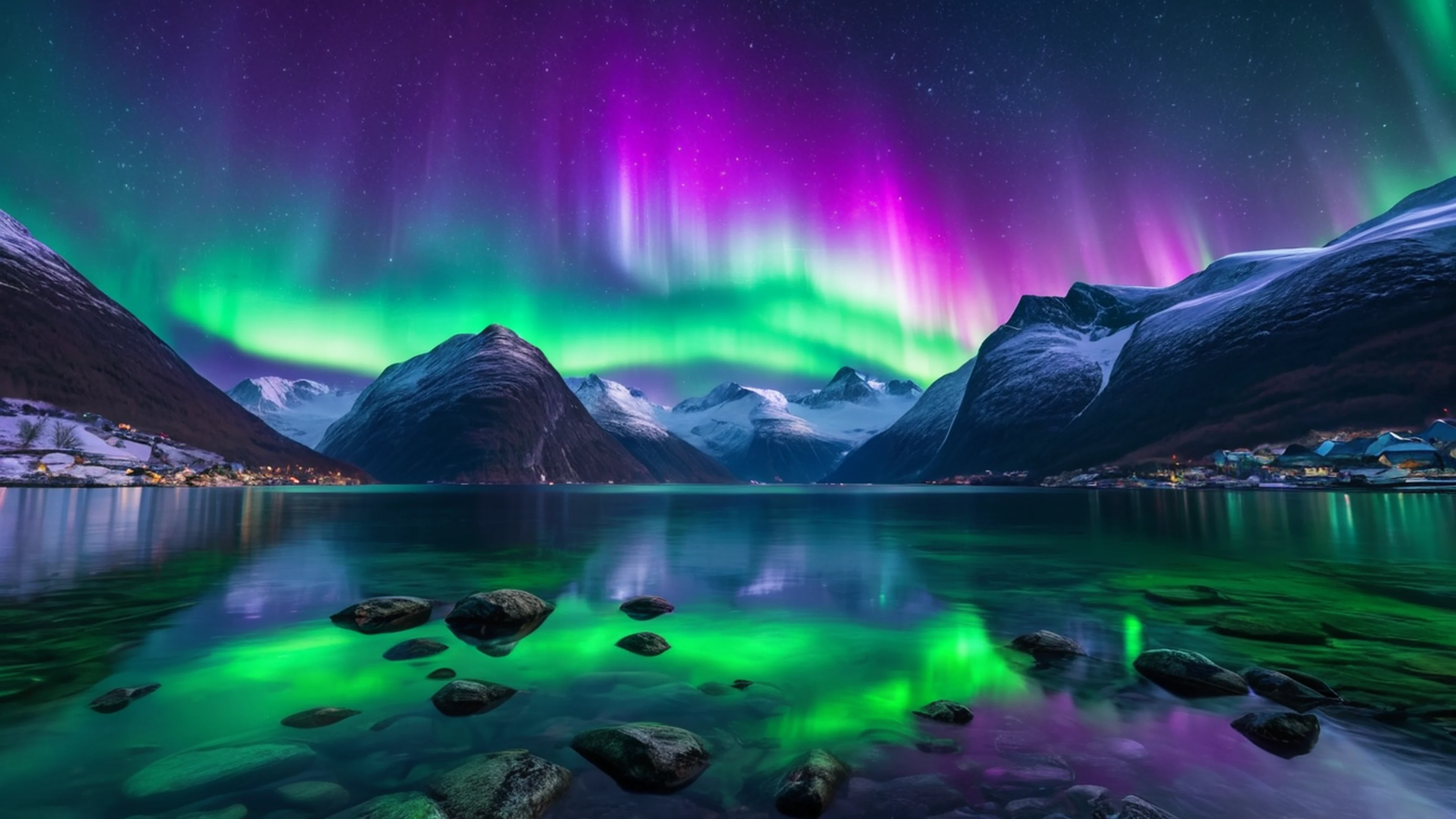Get this stunning Northern Lights Over Snowy Peaks wallpaper in 4K Ultra HD quality. 3840x2160 nature wallpaper available for free download.