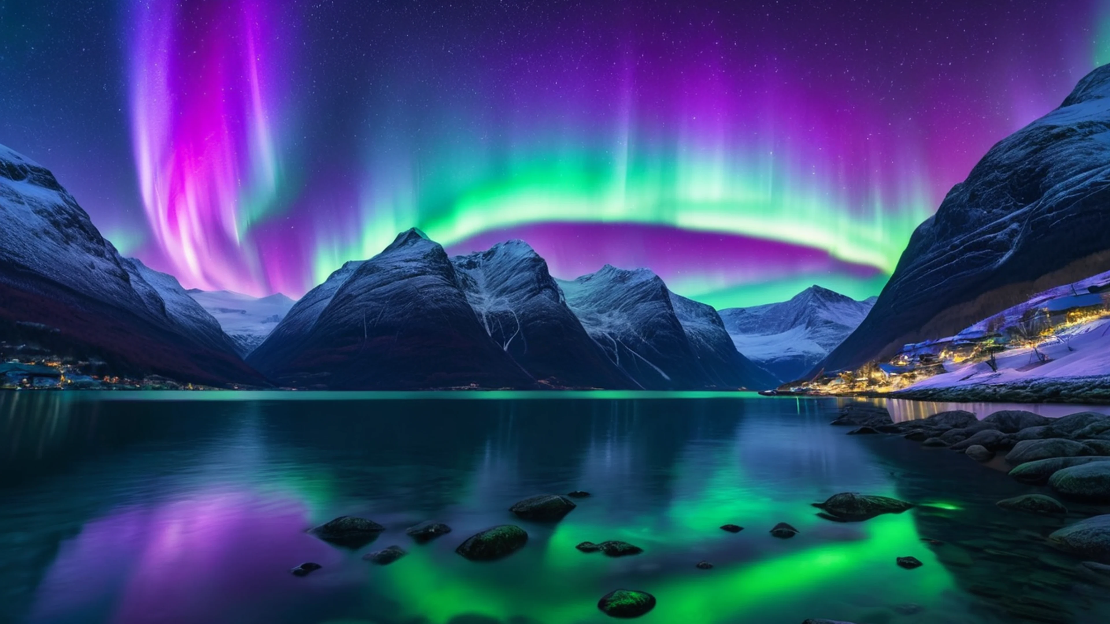 Free Northern Lights Over Snowy Peaks wallpaper in 4K Ultra HD resolution (3840x2160). Beautiful nature background for your screen. No signup required.