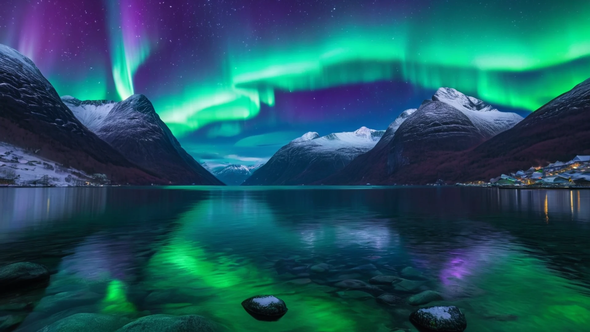Download Northern Lights Over Snowy Peaks wallpaper for free. 1920x1080 tablet resolution, perfect for your desktop. High quality nature wallpaper.