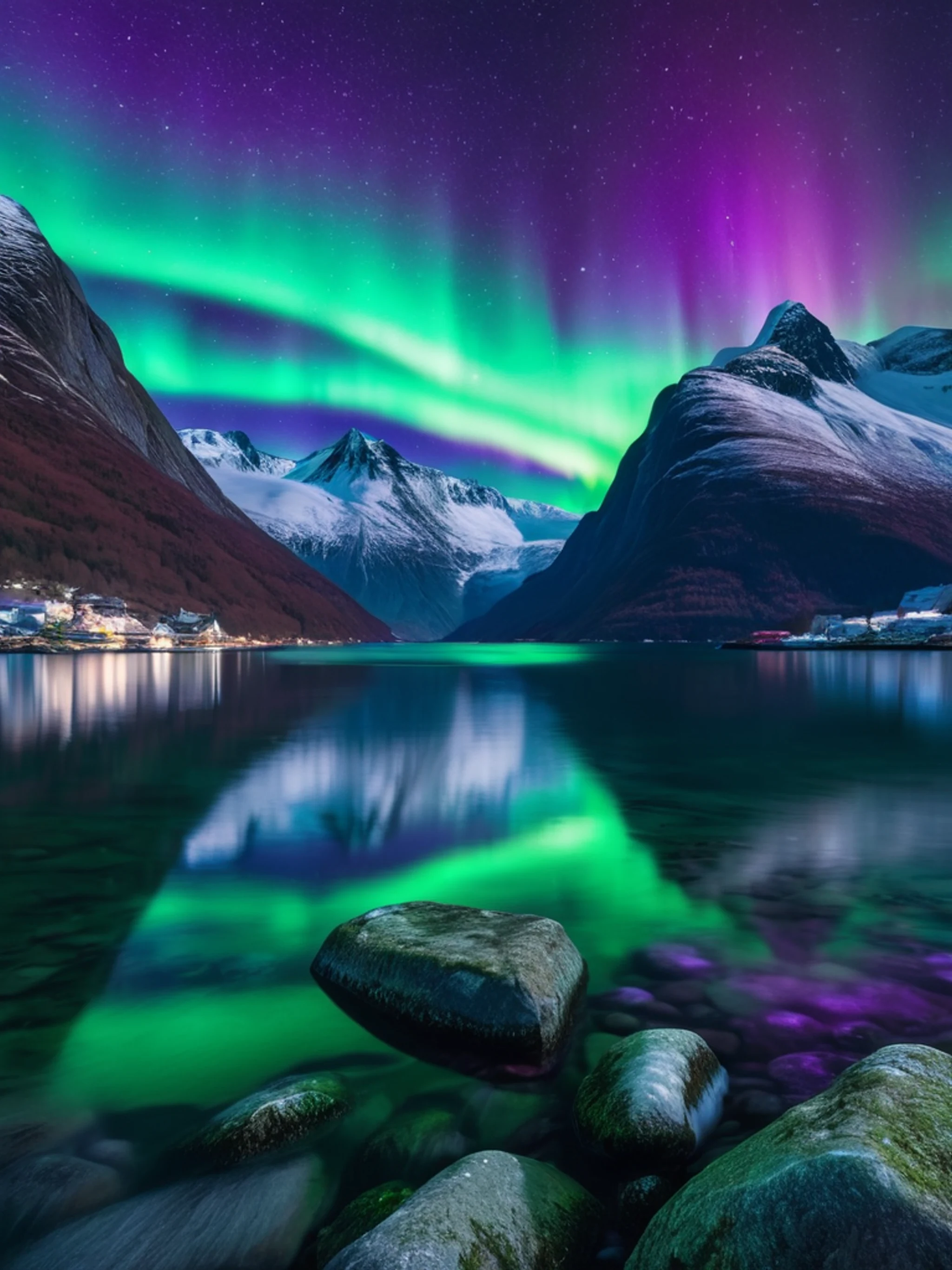 Get this stunning Northern Lights Over Snowy Peaks wallpaper in tablet quality. 2048x2732 nature wallpaper available for free download.