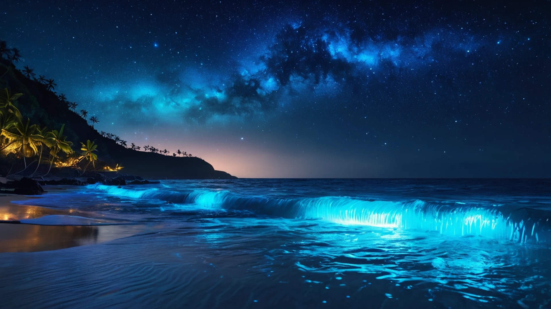 Ocean Bioluminescence Night - free hd ocean wallpaper for desktop