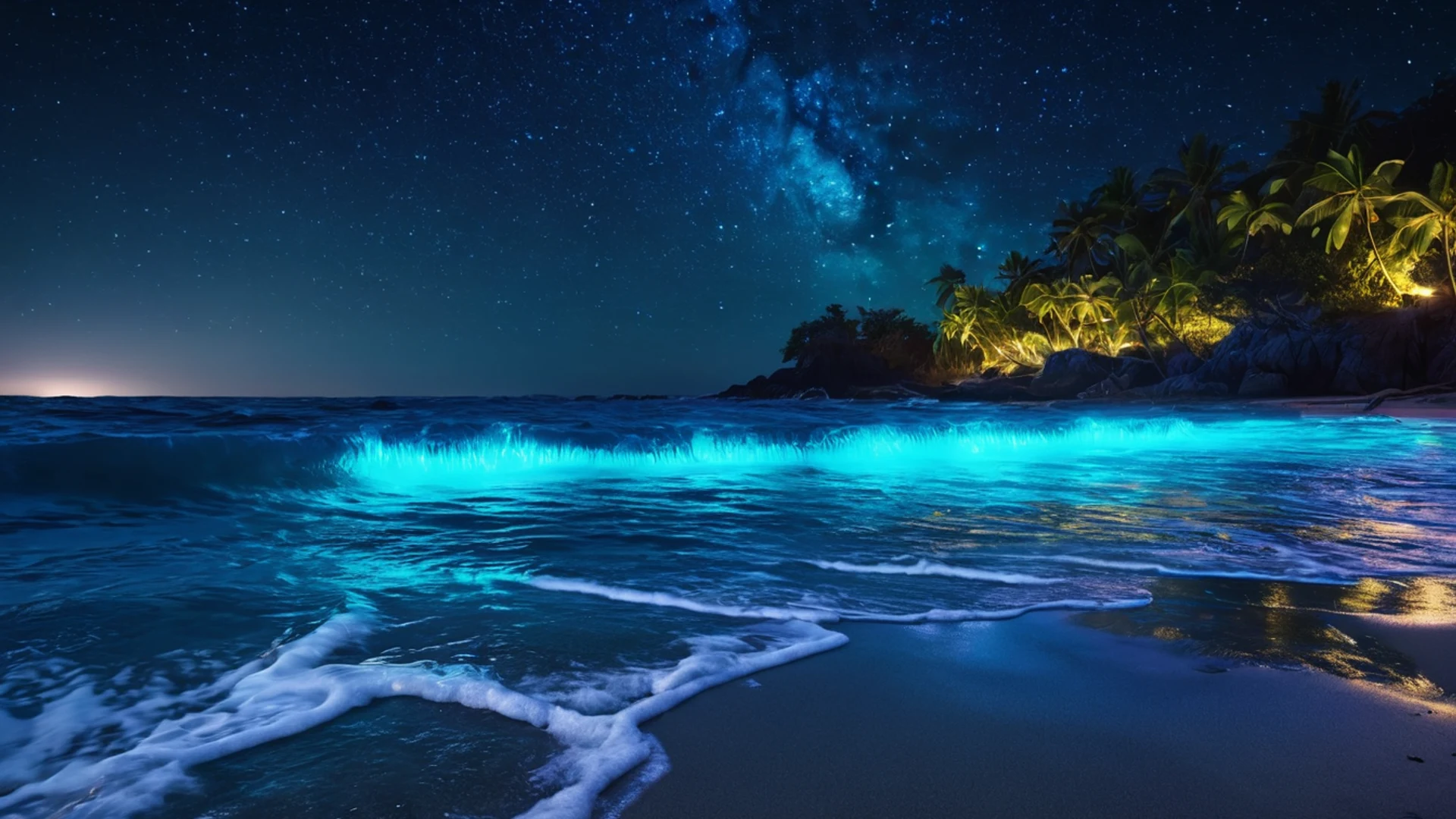 Download Ocean Bioluminescence Night wallpaper for free. 1920x1080 tablet resolution, perfect for your desktop. High quality ocean wallpaper.