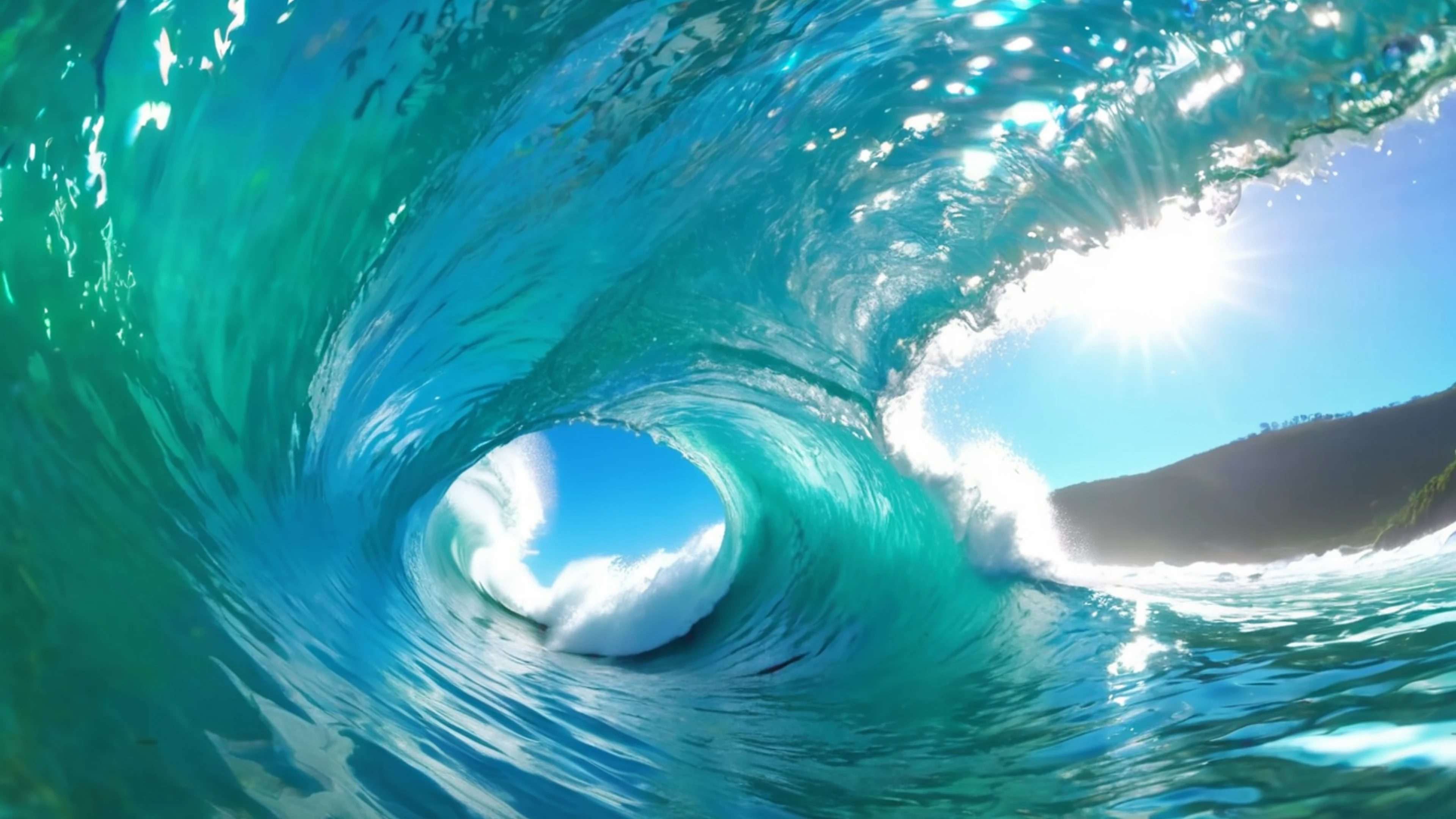 Download Ocean Wave Tunnel wallpaper for free. 3840x2160 4K Ultra HD resolution, perfect for your desktop. High quality ocean wallpaper.