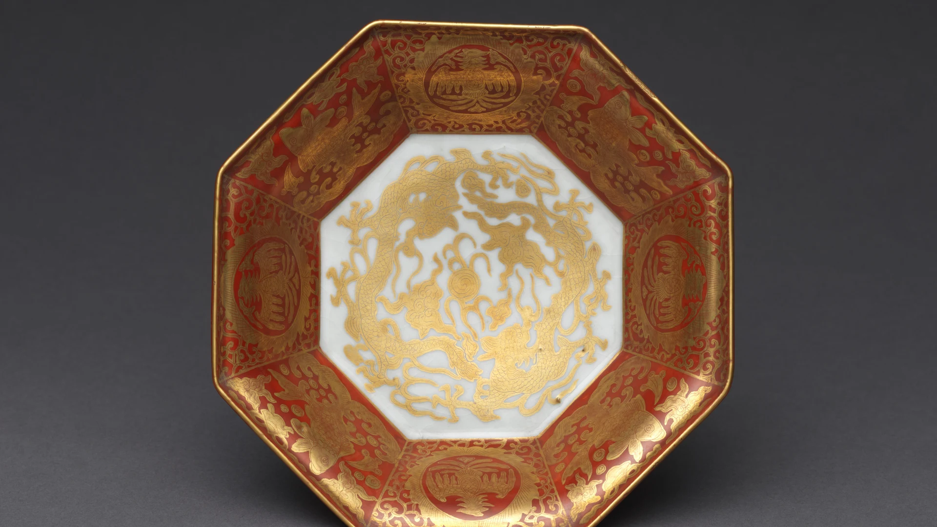 Octagonal Bowl with Dragons and Auspicious Motifs