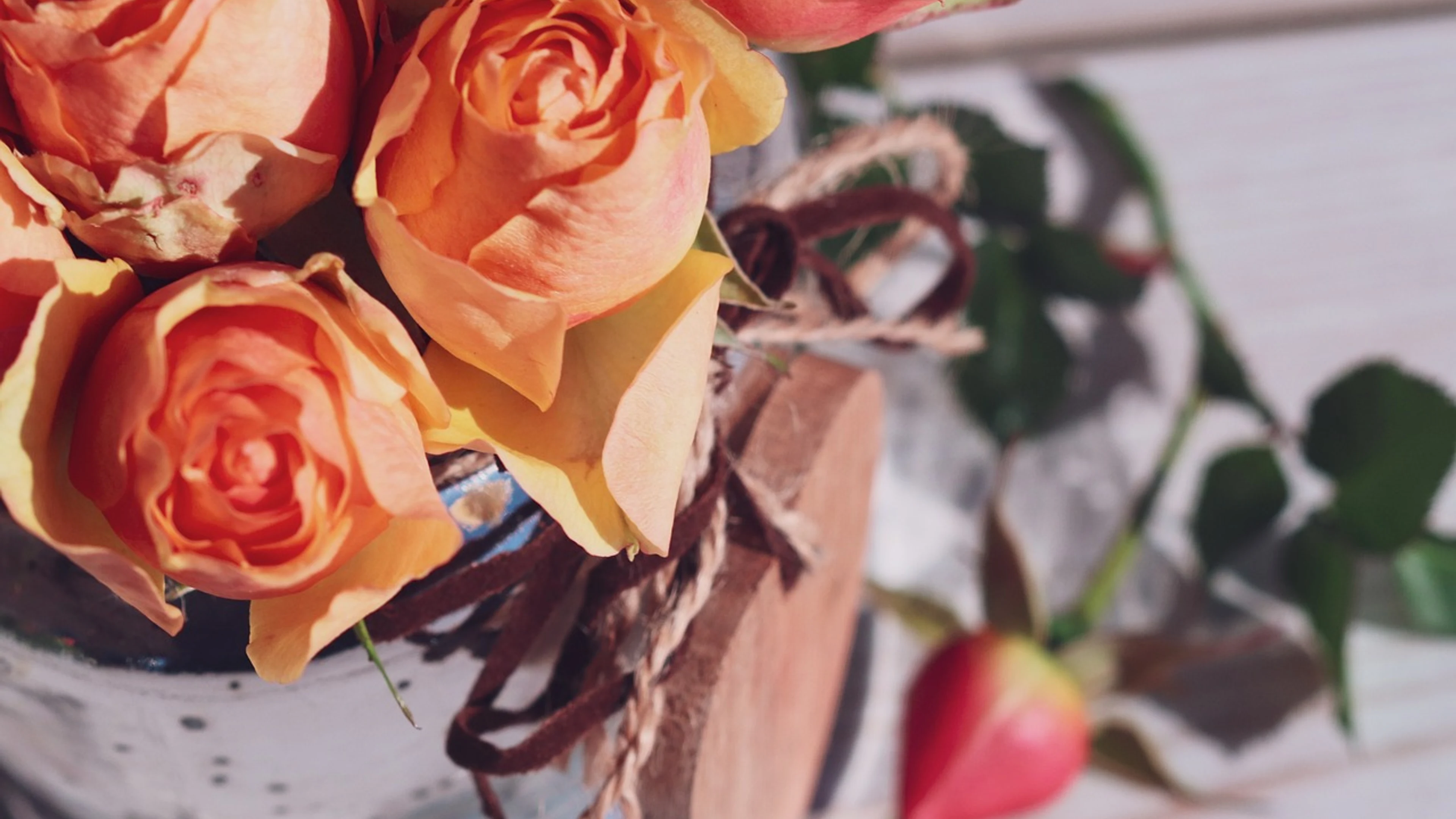 Get this stunning Orange roses close-up flowers floral bouquet wallpaper in 4K Ultra HD quality. 3840x2160 aesthetic wallpaper available for free download.