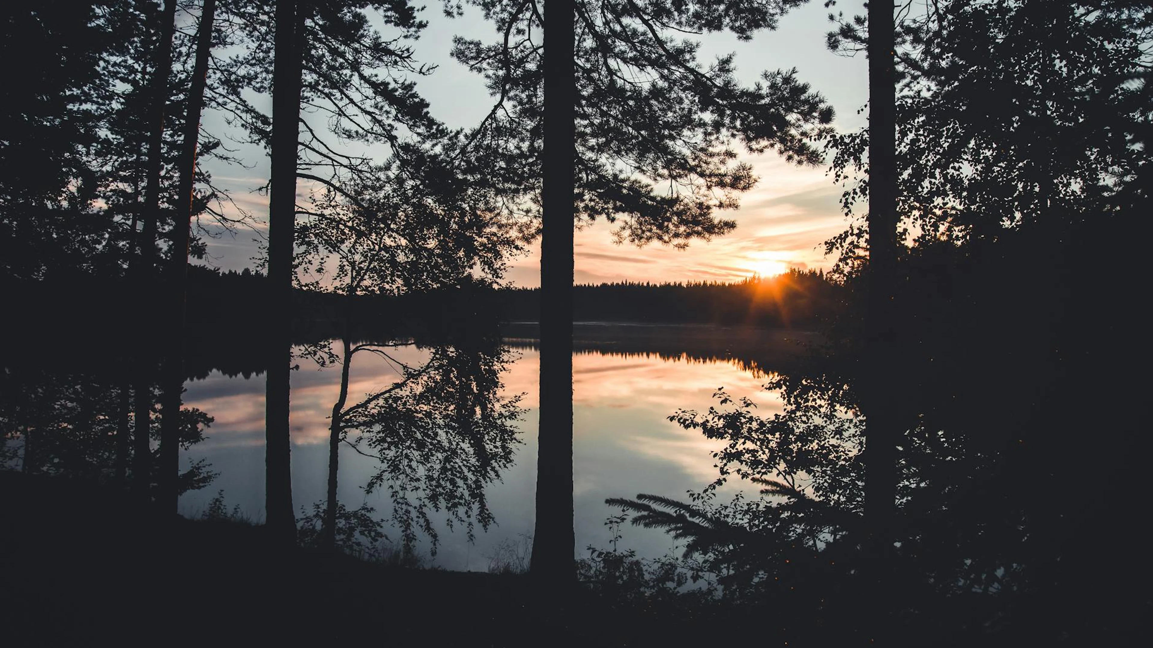Get this stunning Peaceful sunset view with tree silhouettes reflecting on a lake in Dalarna Count wallpaper in 4K Ultra HD quality. 3840x2160 lake wallpaper available for free download.