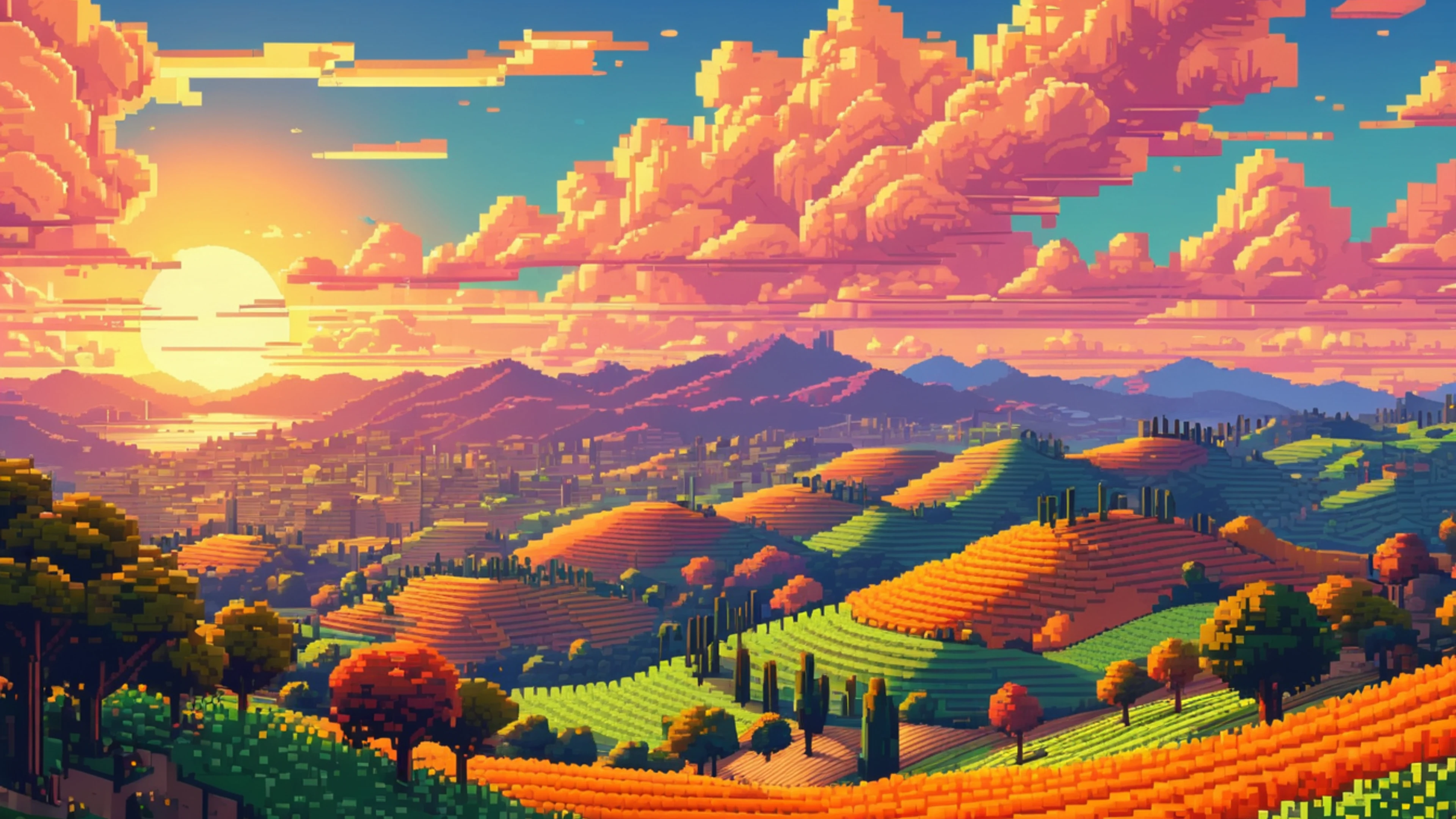 Get this stunning Pixel Art Sunset wallpaper in 4K Ultra HD quality. 3840x2160 gaming wallpaper available for free download.